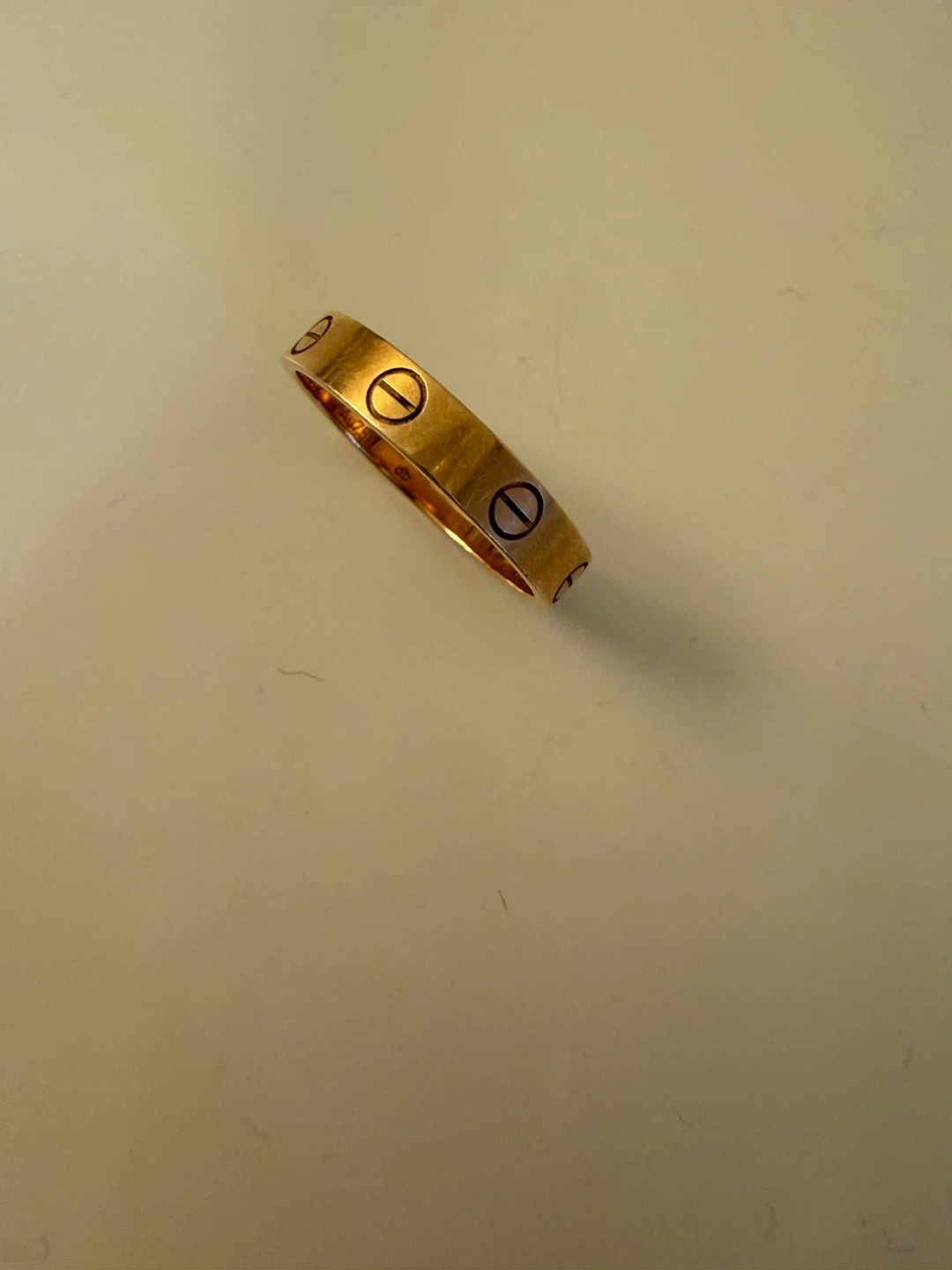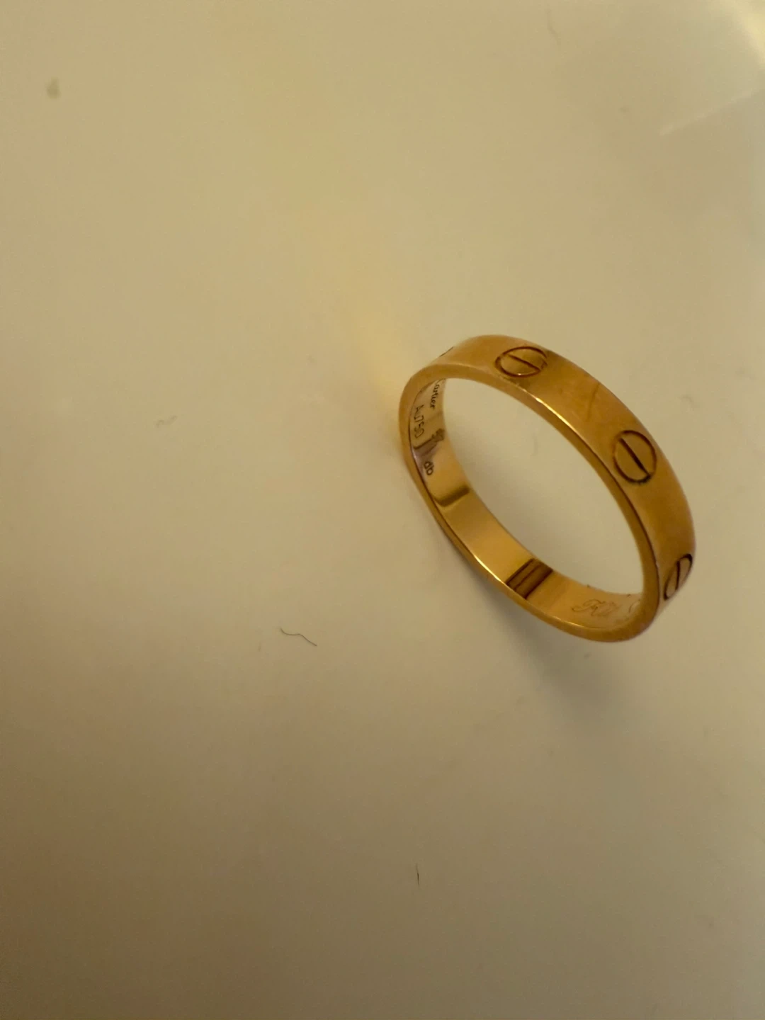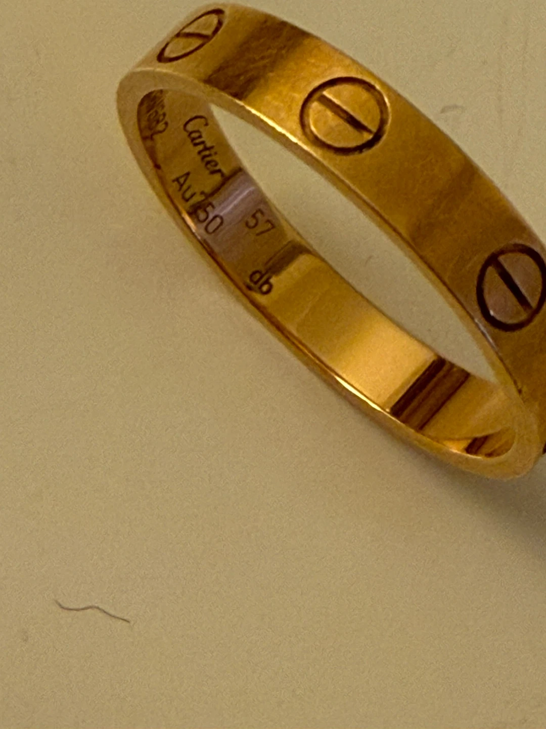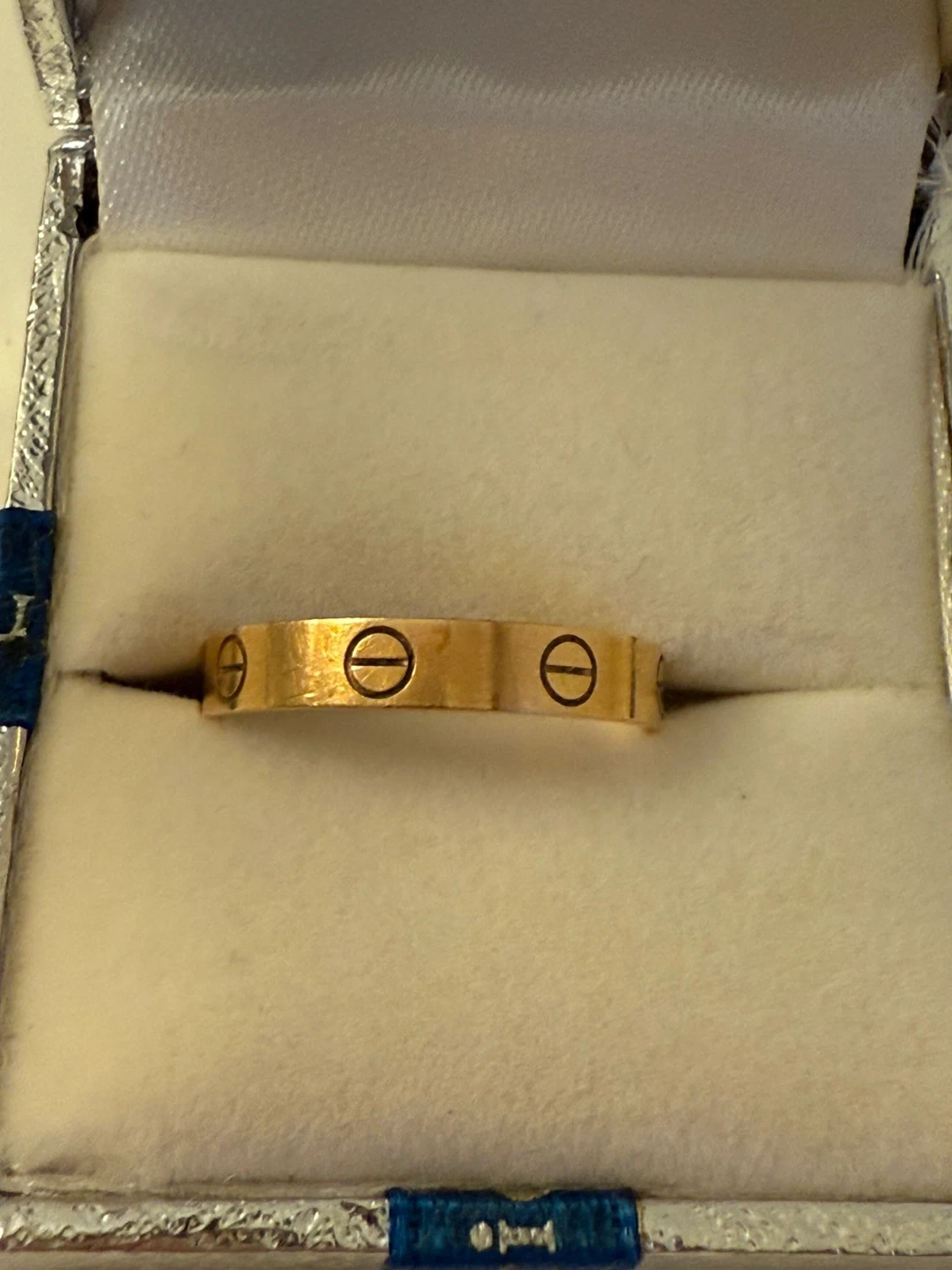 Selling a Cartier Love ring. It is Au 50 size 57. It has the classic screw design all around the ring. Have receipts, with out Cartier box