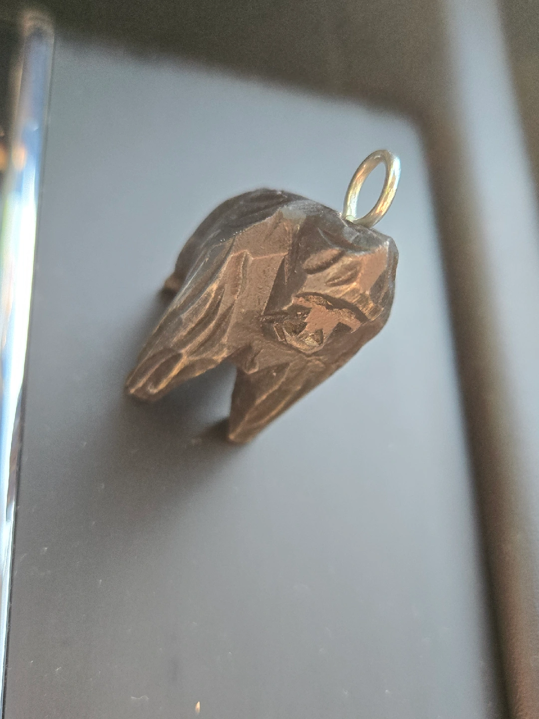 Selling a unique carved gorilla pendant. It has a ring at the top so it can be attached to a necklace or keychain. It is in great condition!