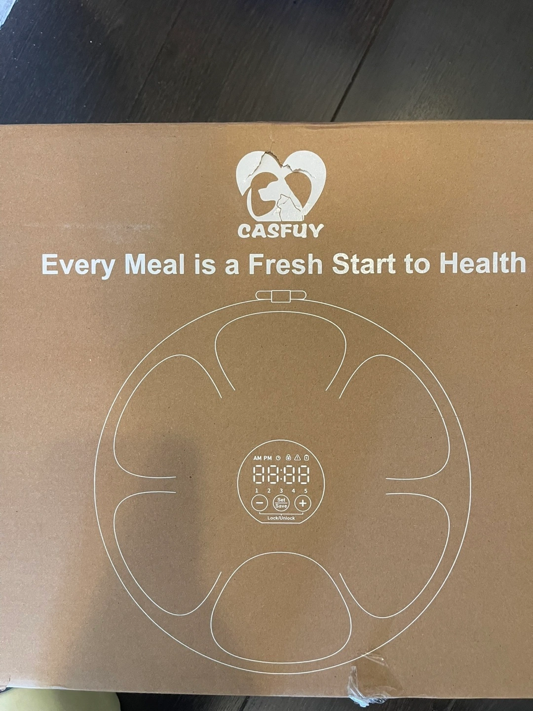 New automatic pet feeder. Features digital timer and multiple feeding portions. Programmable settings. Easy to use.