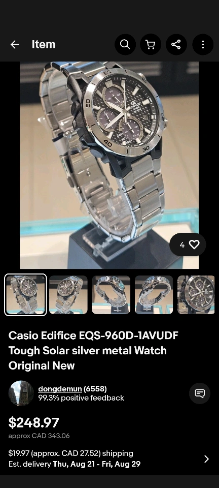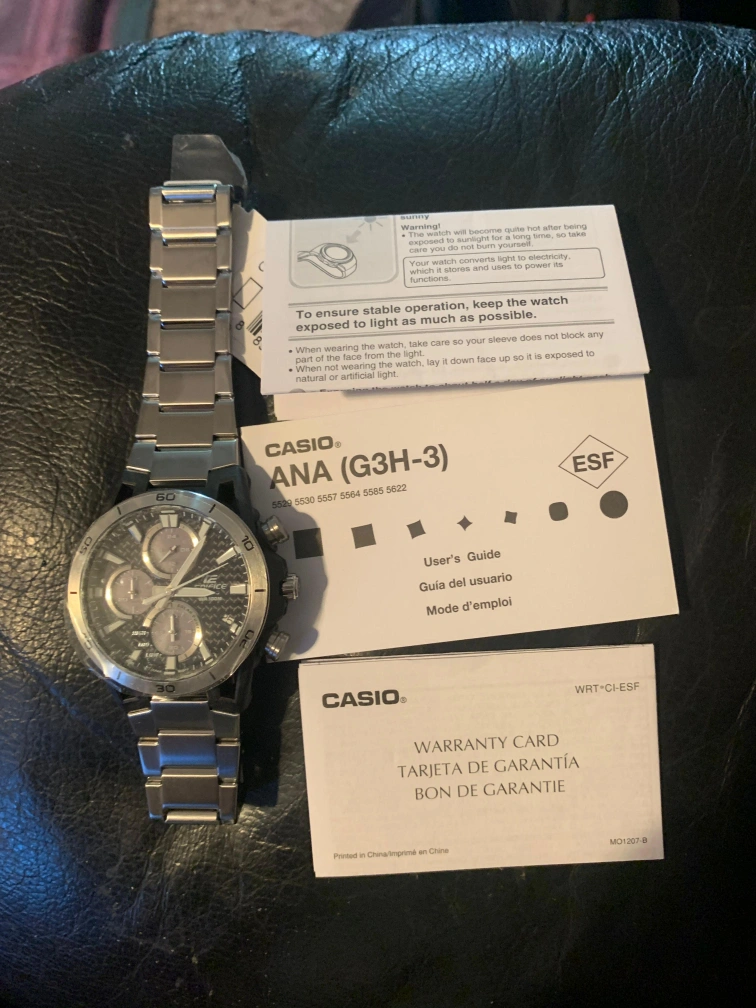 Selling a Casio Edifice EQS-960D-1AVUDF Tough Solar silver metal watch. It comes with the user guide. Retails for $248.97.