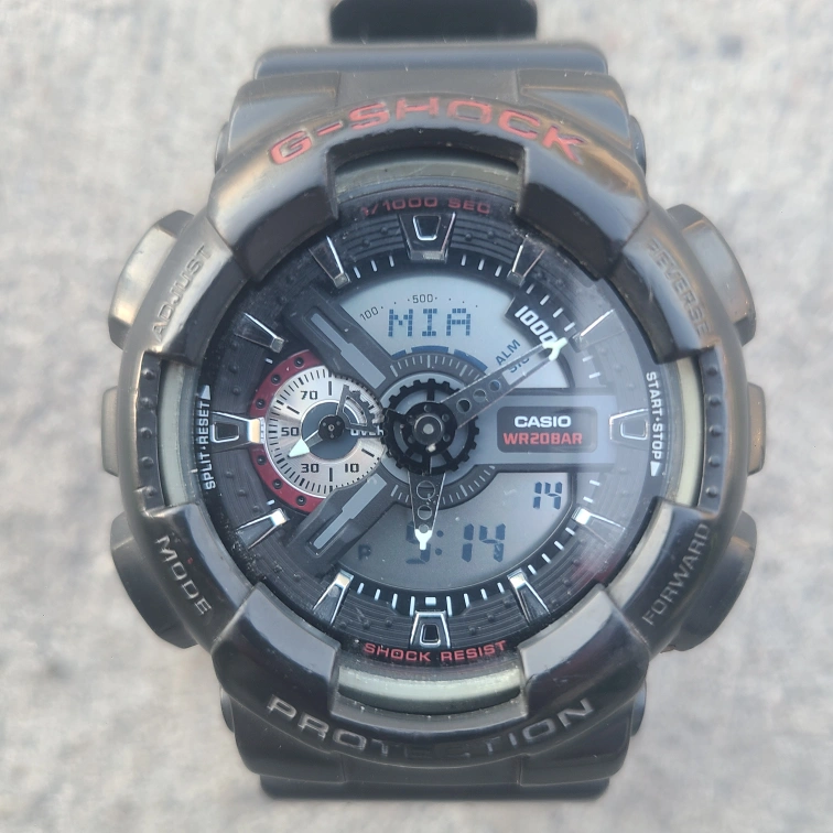 Selling a Casio G-Shock GA-110 watch. It's in great condition and features a shock-resistant design. The watch is water-resistant to 200 meters and has an anti-magnetic structure. It's a durable and stylish timepiece!