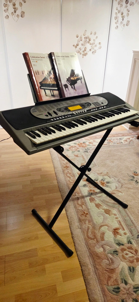 Selling a Casio LK-573 keyboard in great shape! Comes with the stand and two Celebration Series books. Perfect for anyone looking to learn or practice playing the keyboard