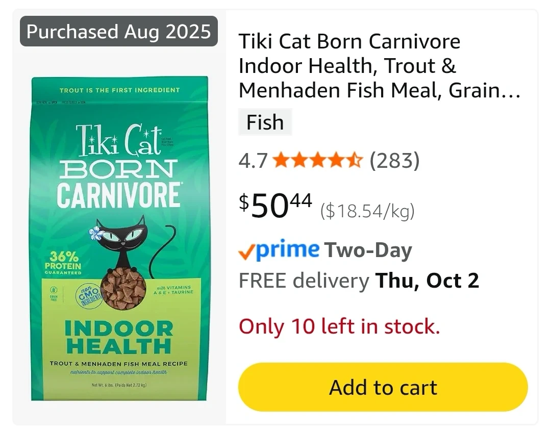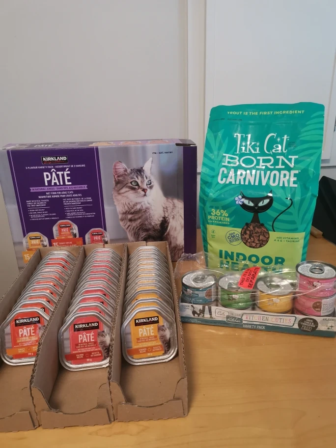 🐾 Cat Food Lot for Sale Unfortunately, my little kitty recently got sick and now needs a special renal diet, so I can’t use this food anymore. Selling the following (nothing expired, all purchased recently): Tiki Cat Born Carnivore Indoor Health (Trout & Menhaden Fish Meal Recipe, 6 lb bag) 🐟 ✨ Brand new, sealed bag. Kirkland Pâté Variety Pack (Chicken, Salmon, Turkey – 32 trays total) ✨ 10 Turkey, 11 Salmon, 11 Chicken. Box opened, but plenty left (see photo). Weruva Cats in the Kitchen “Kitchen Cuties” Variety Pack ✨ 9 assorted cans (box opened, see photo). 💲 Price for everything: 75 (original value was over $140). Everything is in great condition, just can’t be used due to my kitty’s health condition.