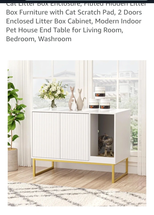 Brand new, never assembled. Modern 2-door cabinet with hidden litter box space and scratch pad. Stylish design with gold legs β doubles as a pet house or end table. Size: 31.5"L x 17.7"W x 21.7"H. π Pickup in Eastwood. Delivery negotiable.