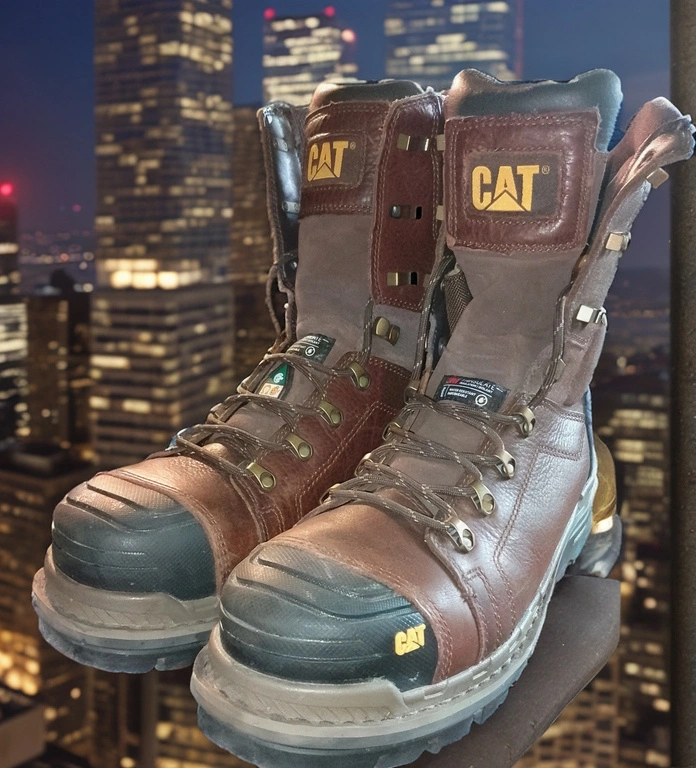 Selling a pair of CAT men's work boots. They're in good condition and ready for a new owner. These brown leather boots are durable and comfortable for any job site. Composite toe and plate. Only worn Twice