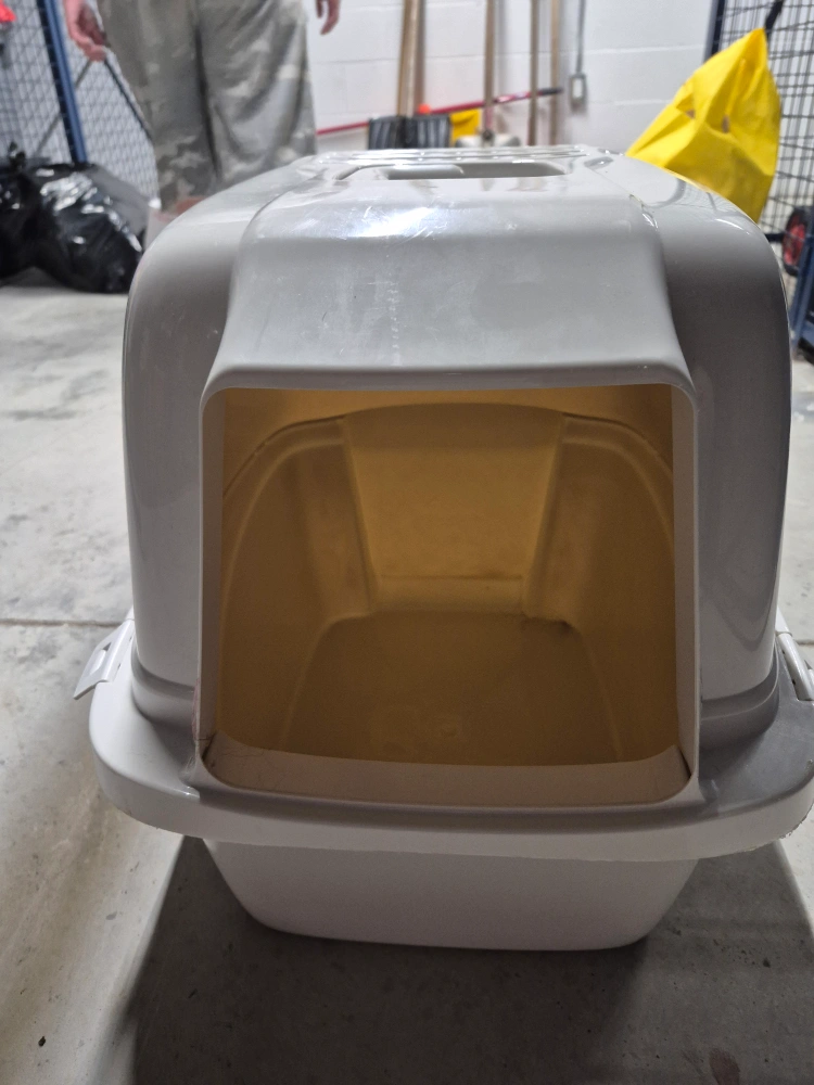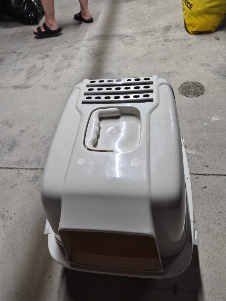 Selling a Catit hooded cat litter box. It provides your cat with privacy while retaining the litter inside. The large hood lifts up for easy access for cleaning. The built-in carbon filter helps reduce odours too