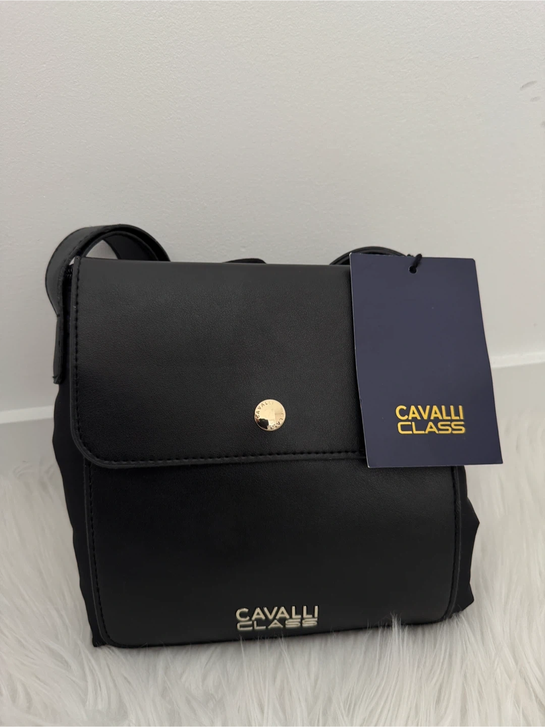 Selling a Cavalli Class shoulder bag in black. It's brand new with tag and has a sleek, stylish look. Perfect for everyday use or a night out! Comes from a clean home pets free and smoke free. Feel free to check my other listing. Thanks:)