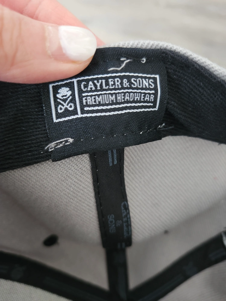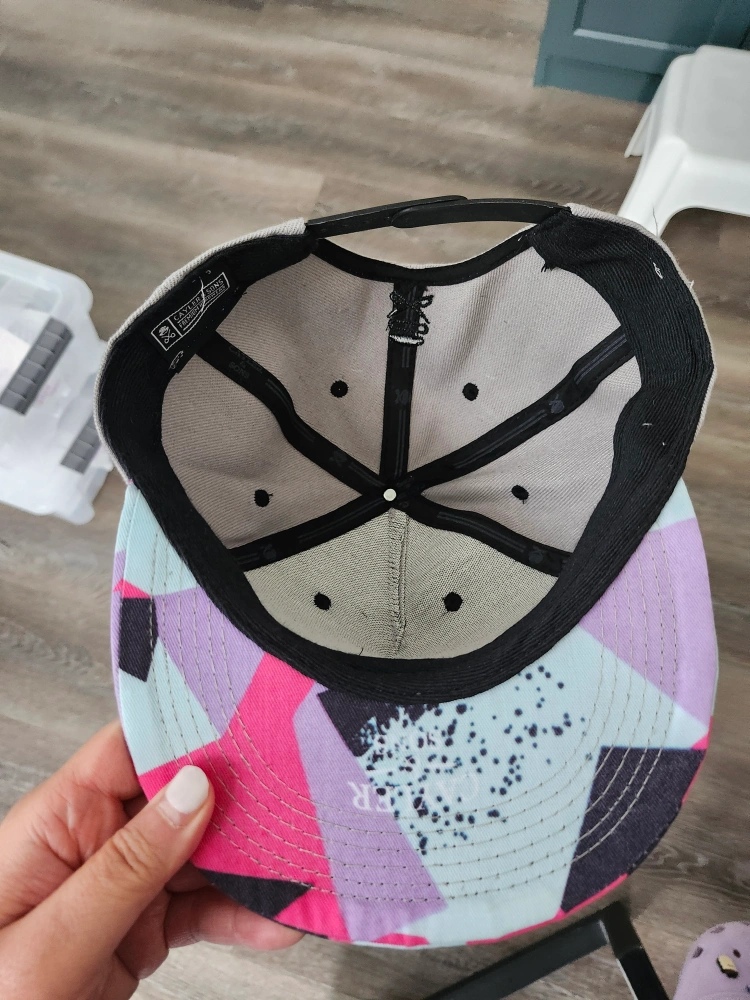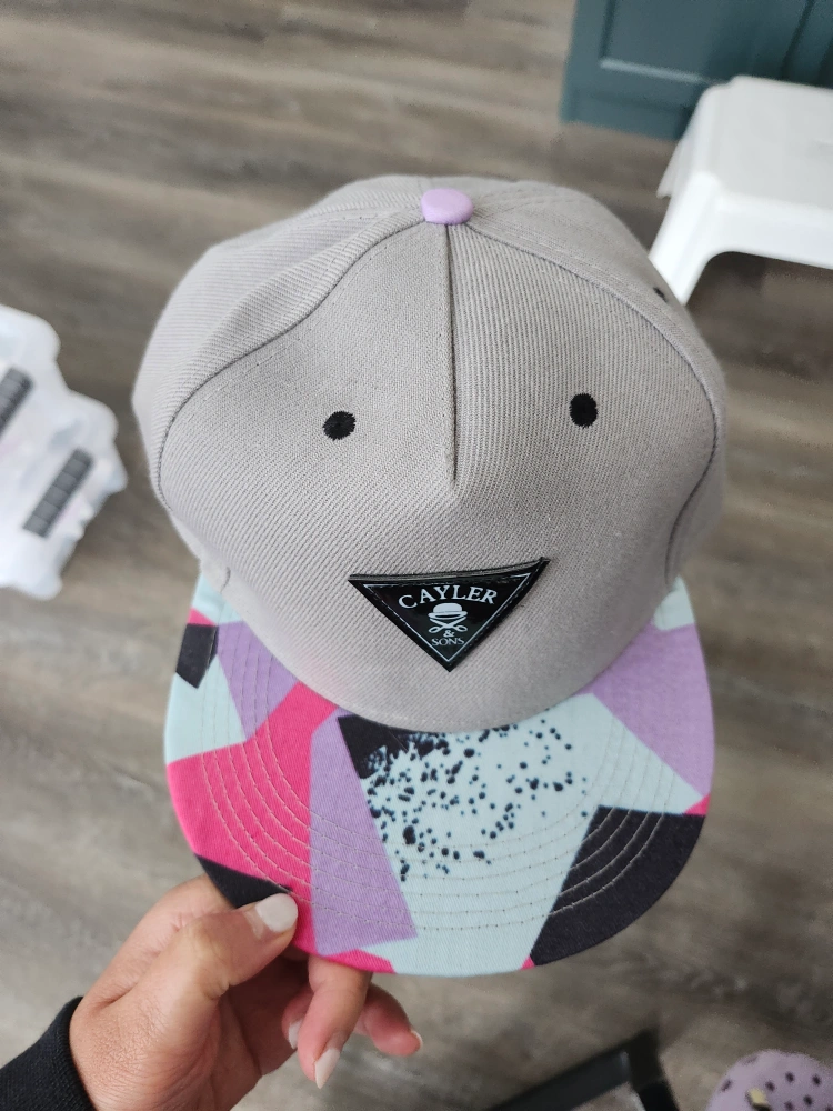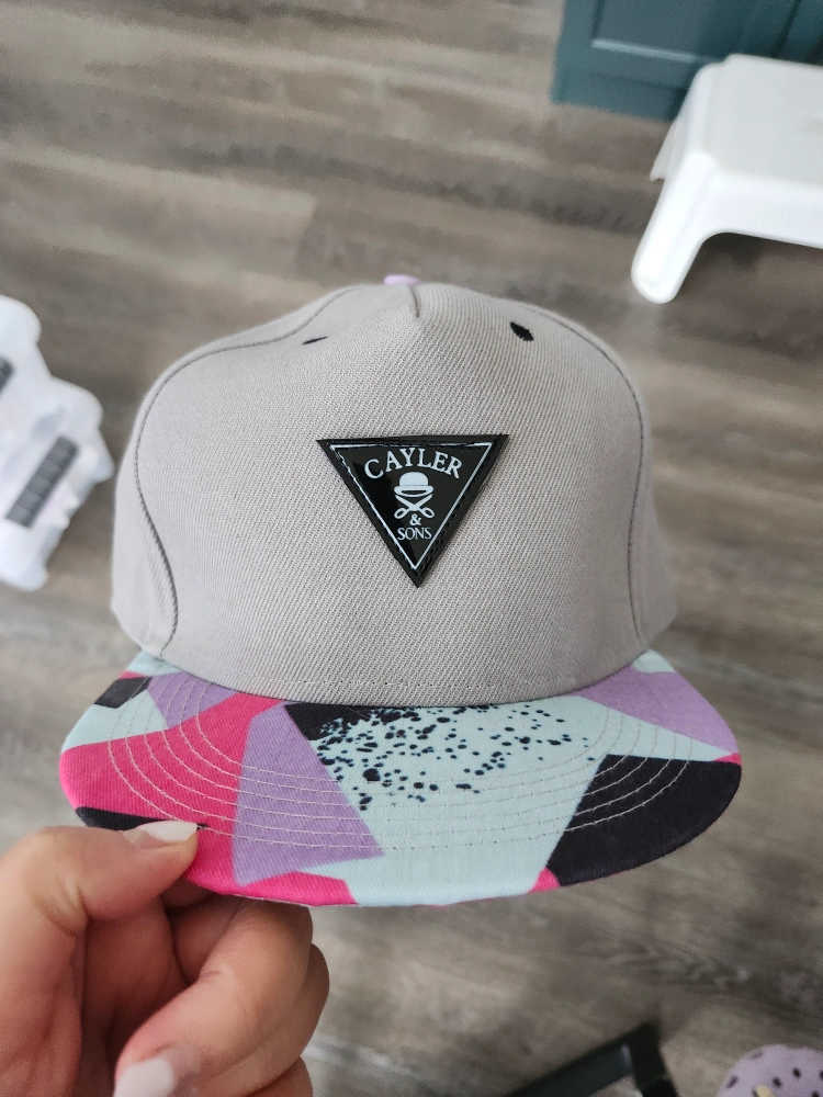 Selling a Cayler & Sons premium headwear hat. It features a grey top and a colourful geometric pattern on the brim. Adjustable strap at the back for a comfy fit!