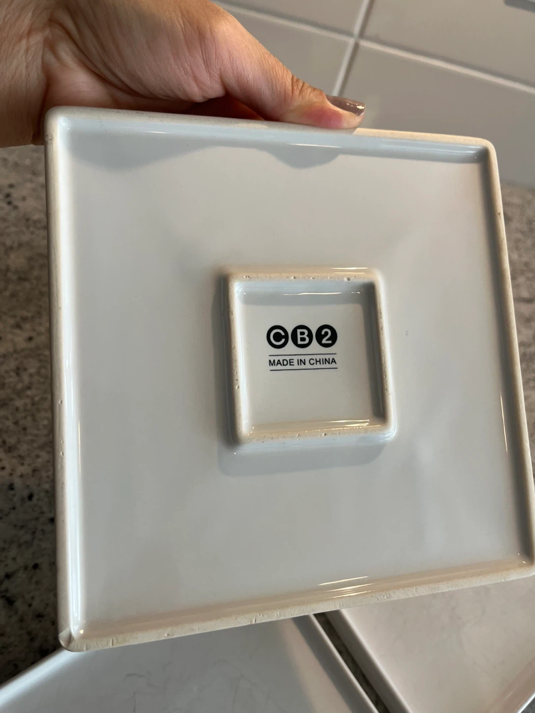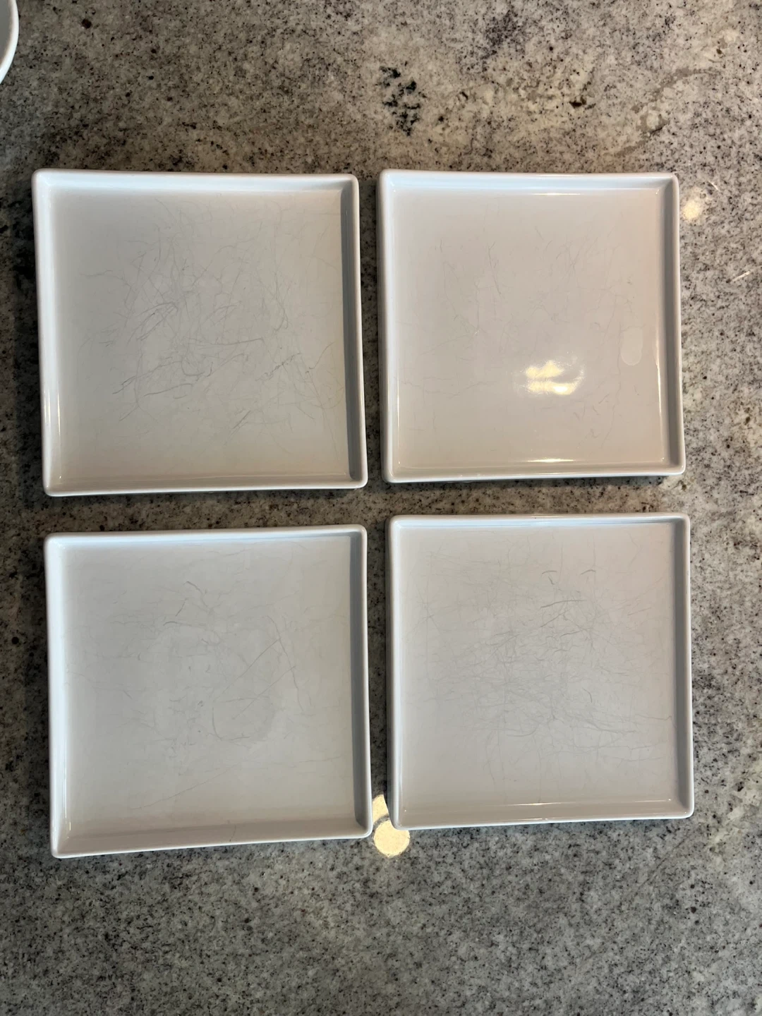 Selling a set of four square white dinner plates from CB2. They're in good used condition and ready for a new home! Perfect for adding a modern touch to your dining table