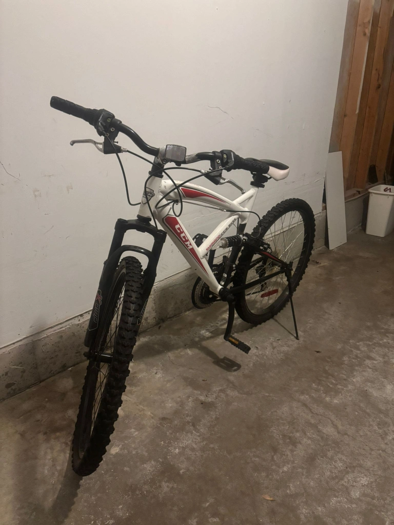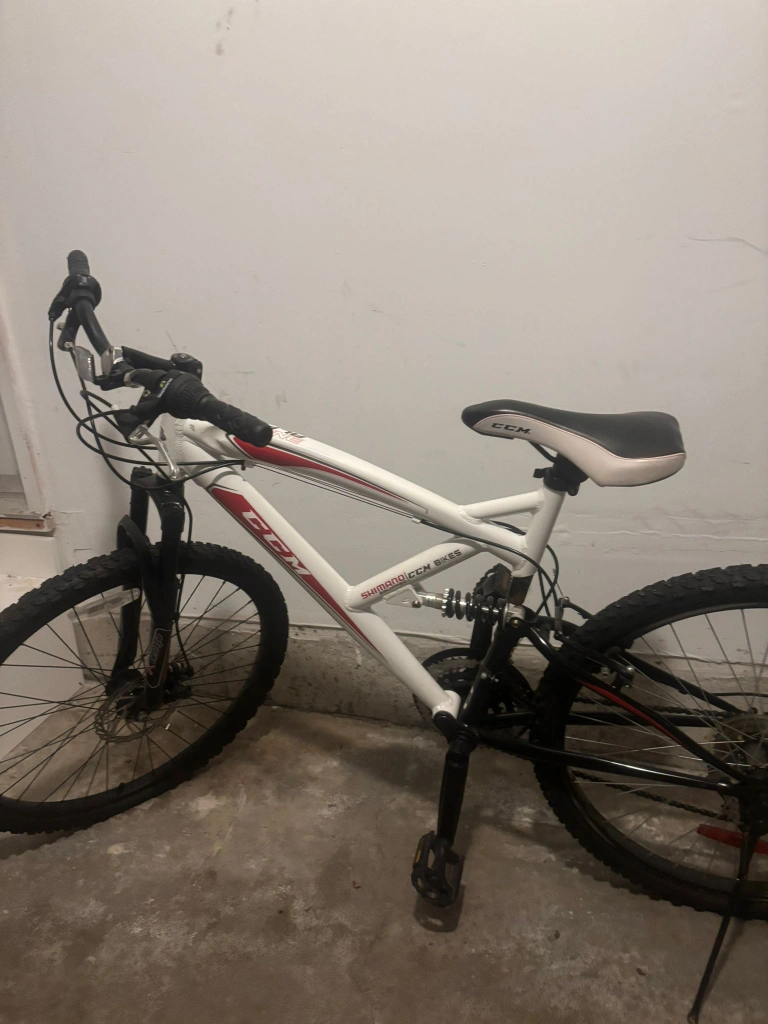 Selling a CCM Alpine mountain bike! It's a full suspension bike, perfect for trails or getting around town. It’s in good condition and ready to ride!