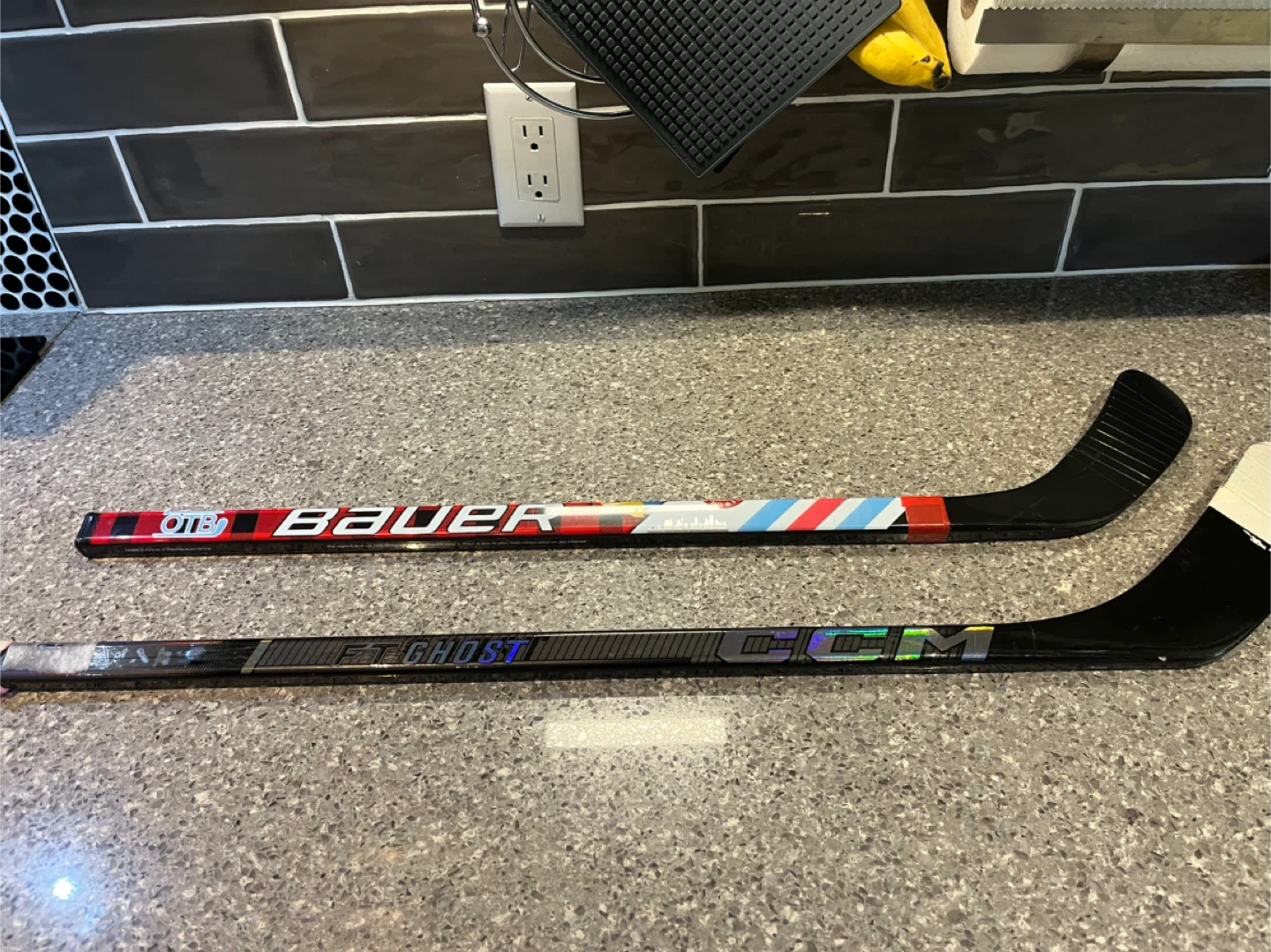 Selling two hockey sticks: a CCM FT Ghost and a Bauer stick. Both are in great condition