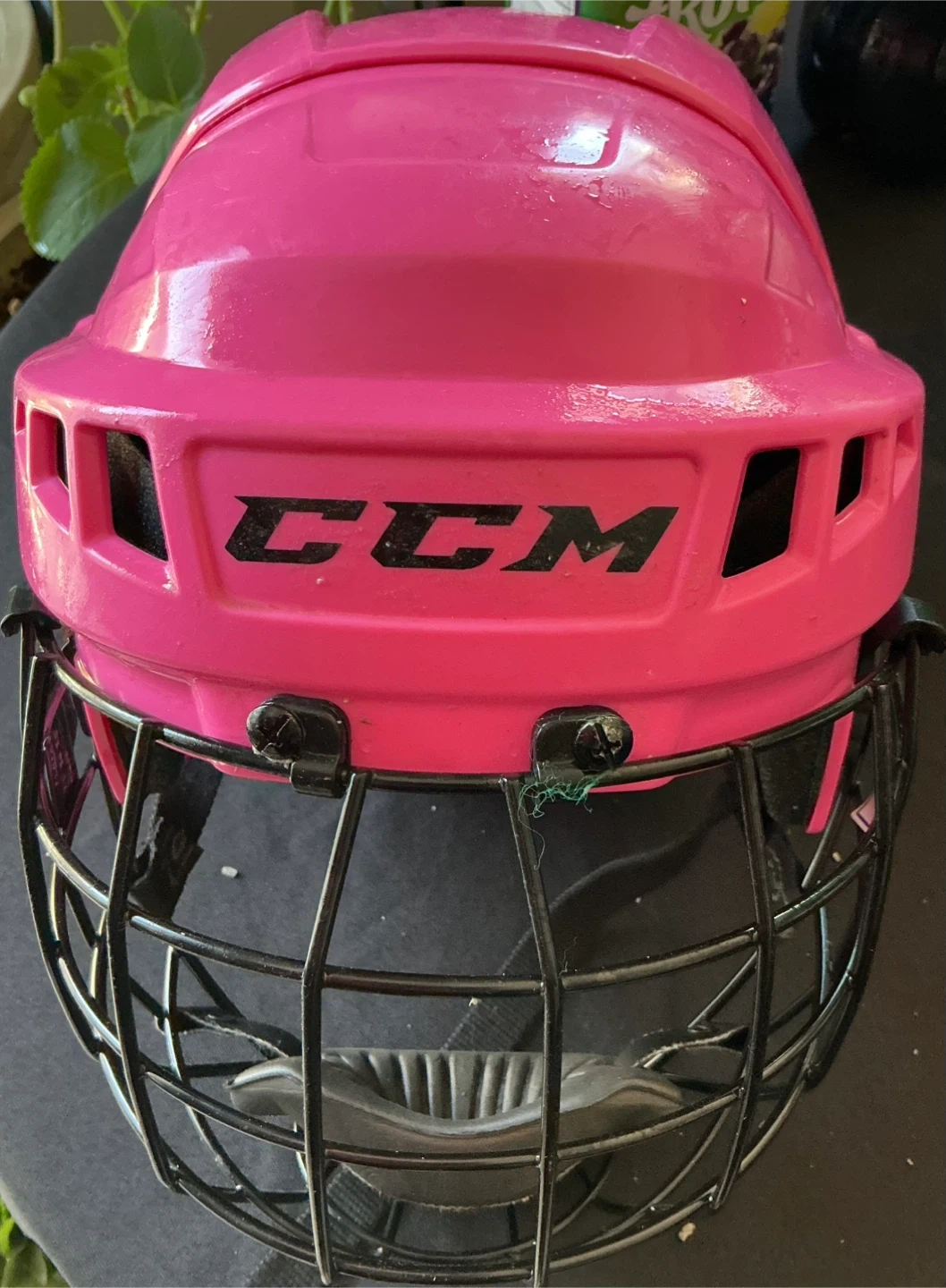 Selling a CCM hockey helmet in pink! It's in good condition and ready for the rink