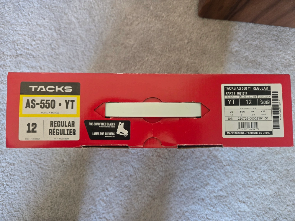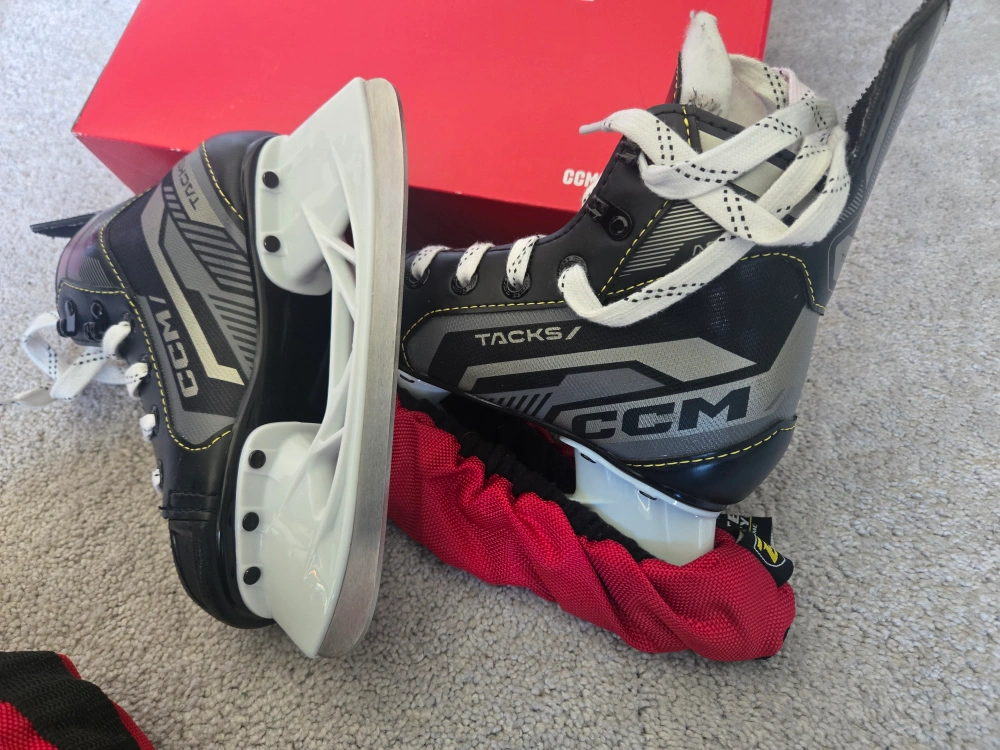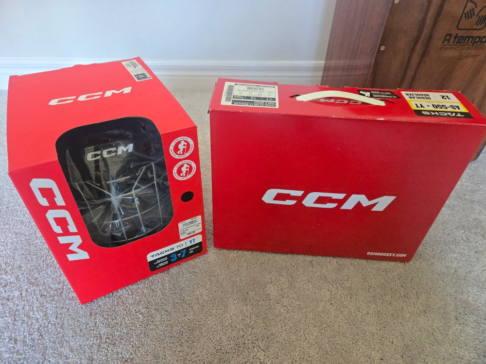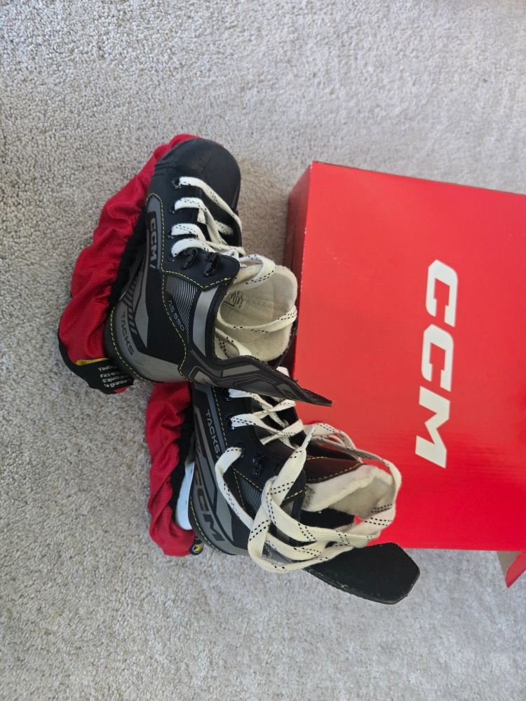 Selling package of CCM Skates and Helmet : - Used for one season only - Skates CCM AS-550 YT size 12. Fits ages 4-6. Skates come with the cover - Helmet CCM TACKS 70. Fits ages 3-7 - Both are in perfect condition
