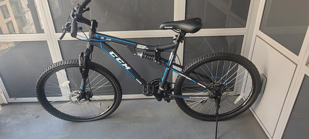 Selling a CCM SL 2.0 mountain bike with 26-inch wheels. It's in good condition and ready for some trails or city riding. The bike features a suspension fork and a comfortable seat. It's perfect for someone looking for a reliable and affordable mountain bike. the tires are out of air but are in perfect condition. this bike has been in storage for a while