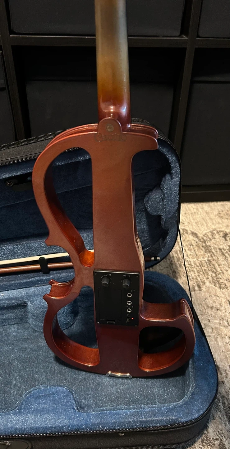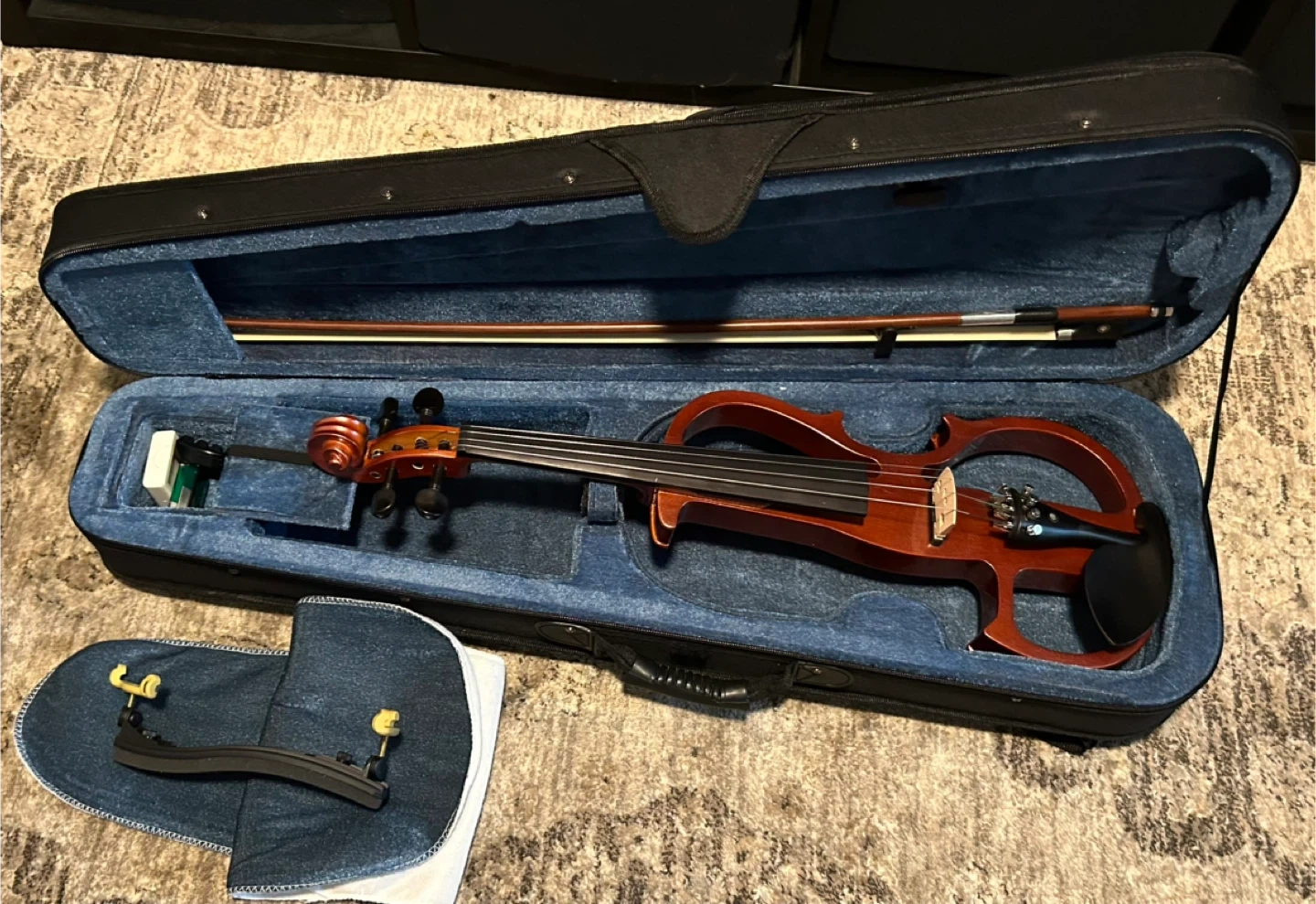 Cecilio CEVN-2BK Ebony Fitted Silent Electric Violin, Style 2, Metallic Black, Size 4/4 (Full Size) Barely used and cared for. Comes with case, cable, rosin, shoulder rest and bridge mute.