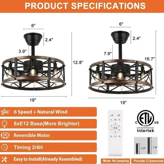 π Pick-up: North York (Sheppard Ave West / Allen Rd) Product Details: SHLUCE 19" Farmhouse Fandelier Ceiling Fan with Light Caged, bladeless design with built-in lighting and remote control Modern, compact ceiling fan suitable for living room or bedroom Sleek black finish, ETL certified Combines style and functionality for small to medium spaces