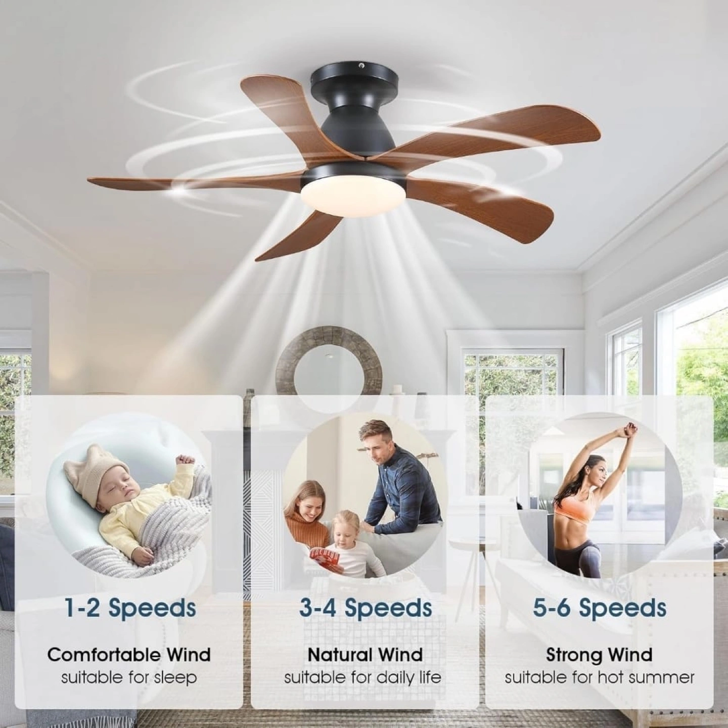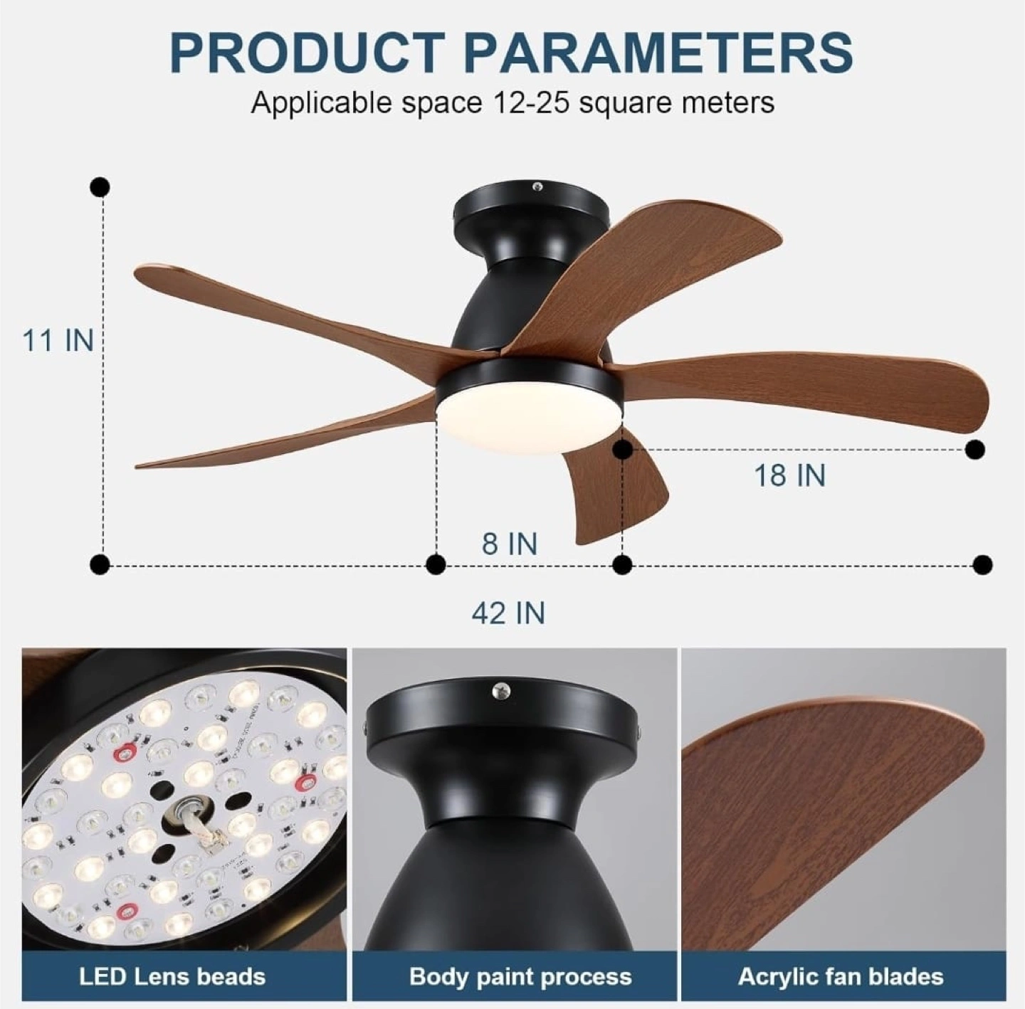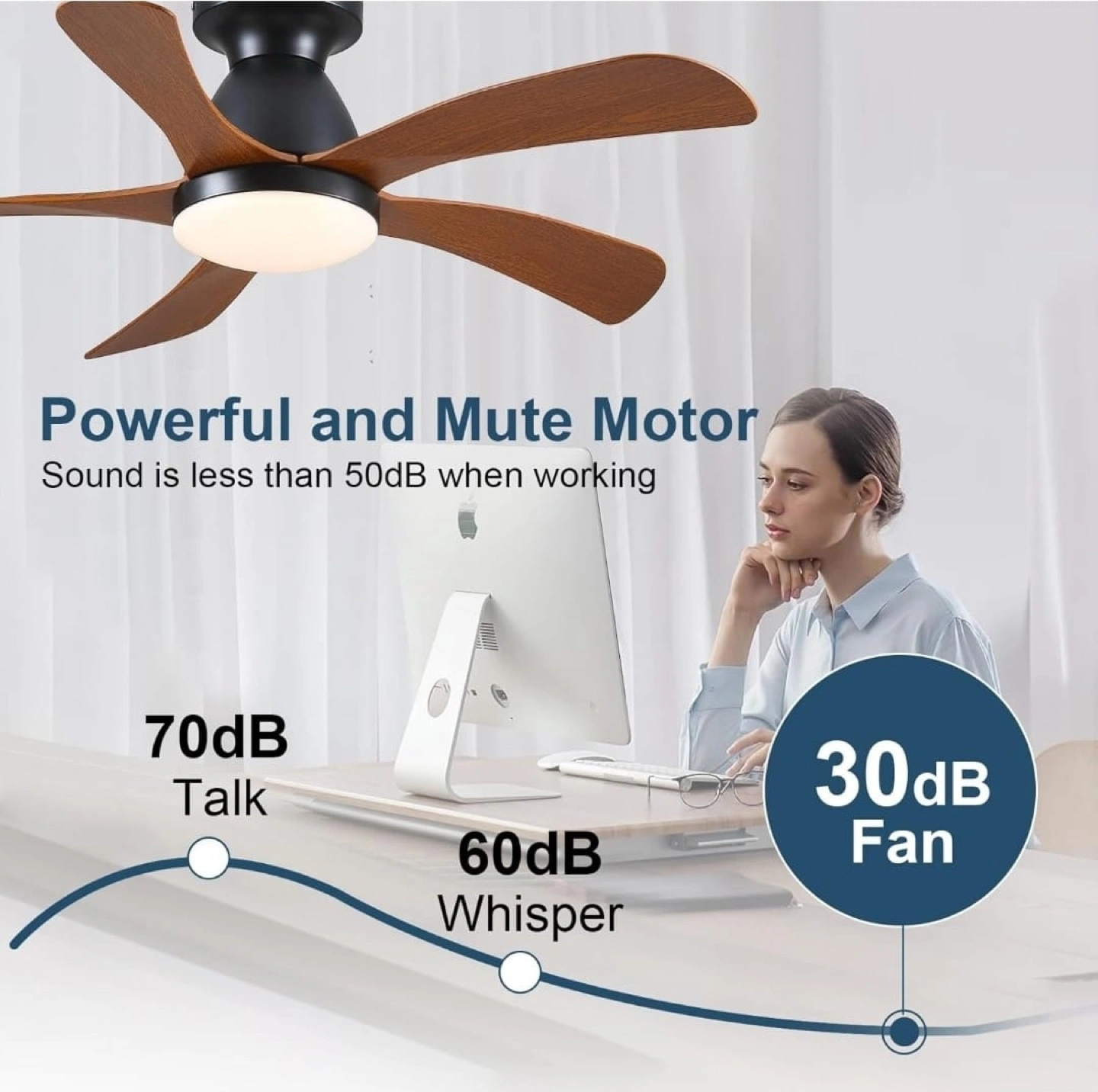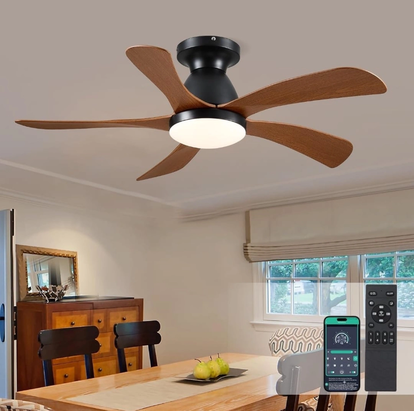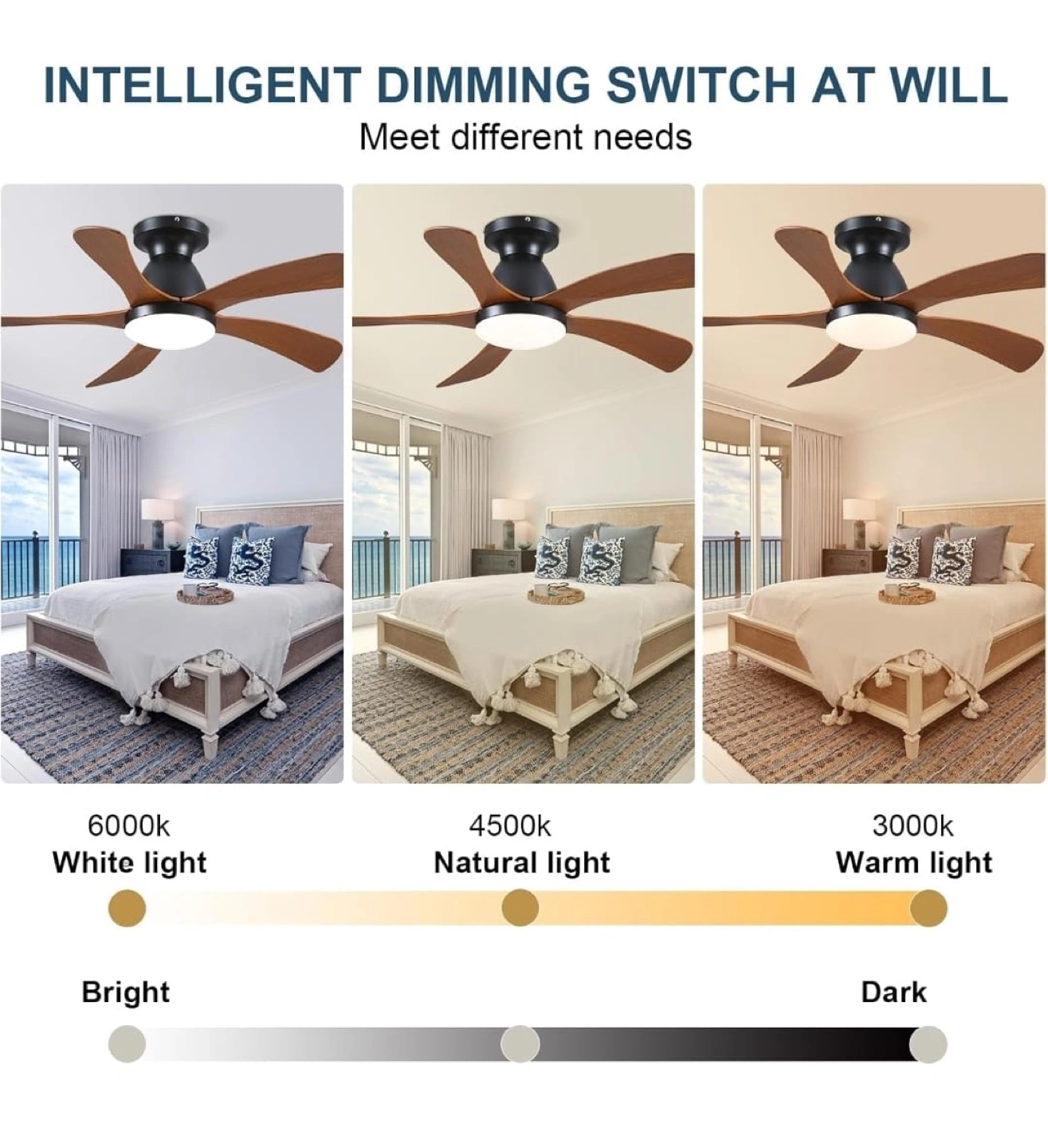 Ceiling Fans with Lights and Remote, 42 Inch Ceiling Fan for Bedroom with 5 Reversible Blades, Modern Ceiling Fan Noiseless Reversible DC Motor, 6 Speeds, Timing, Wood Fan for Farmhouse