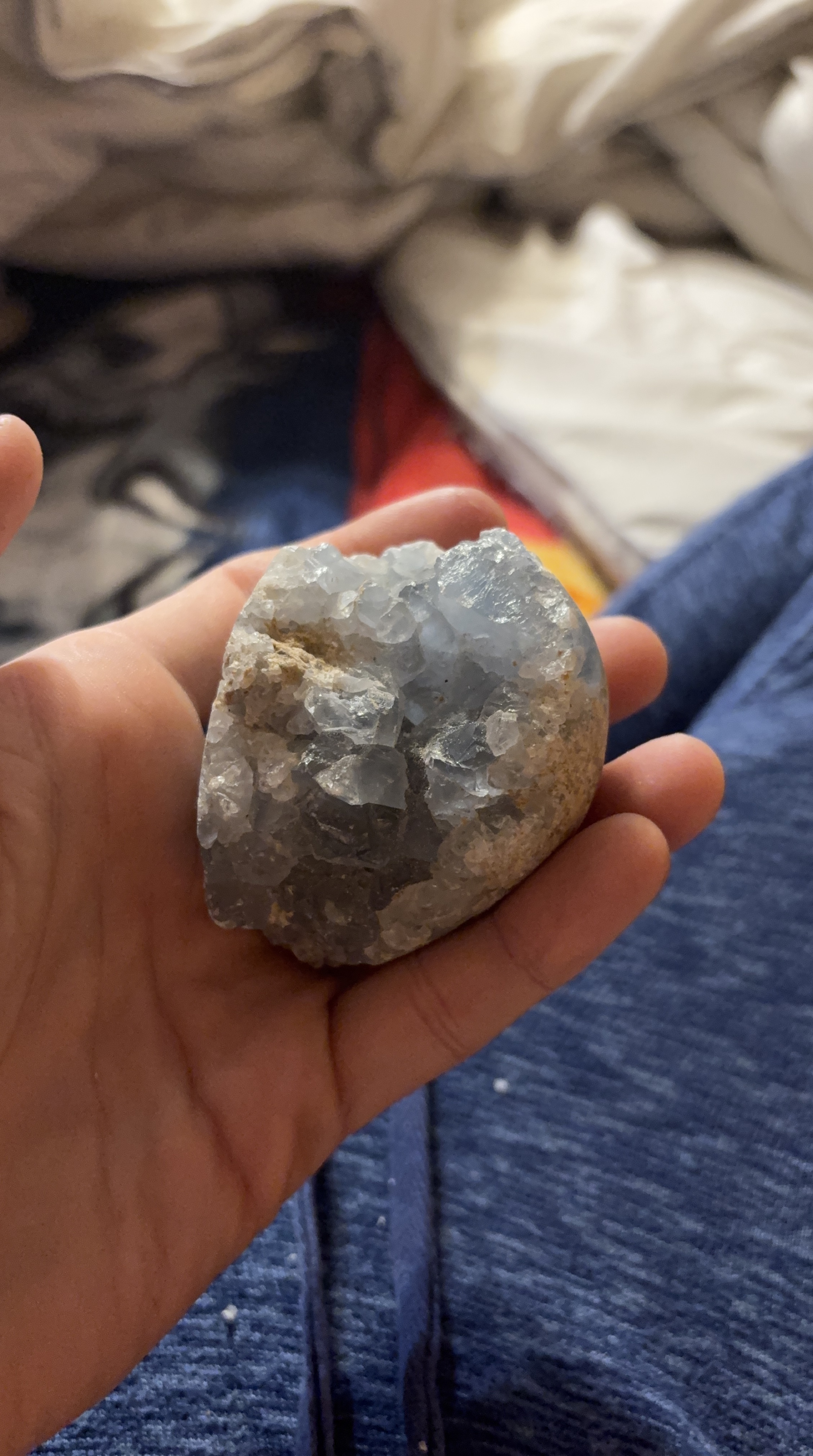 Selling a large beautiful Celestite crystal geode. It has a light blue hue and a unique, raw texture. Perfect for adding a touch of natural beauty to your space!