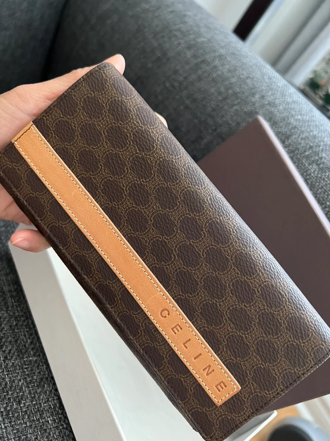 Selling a Celine wallet that's in great condition! It comes with its original box, making it perfect as a gift or for personal use. The wallet features the classic Celine pattern and has a well-organized interior with multiple compartments for cards and cash