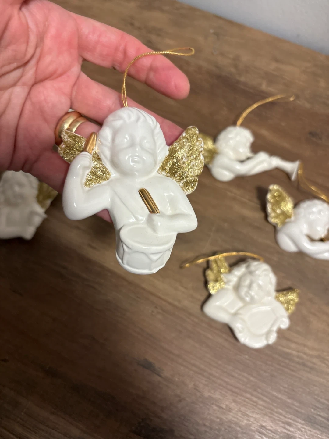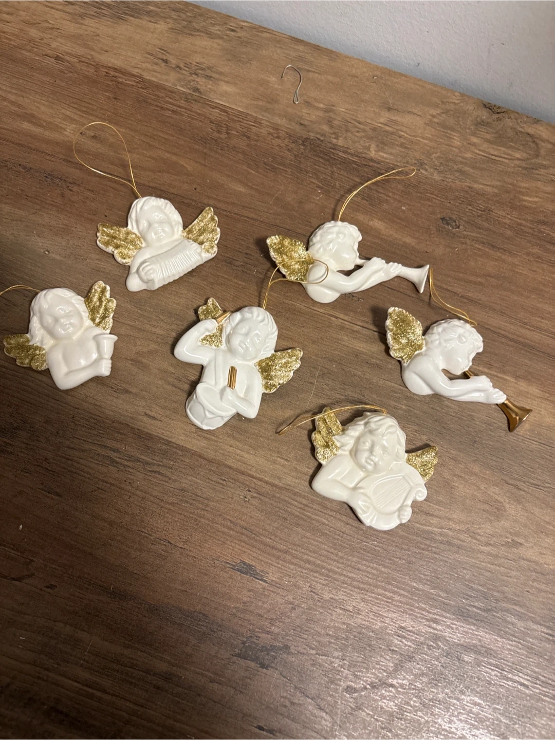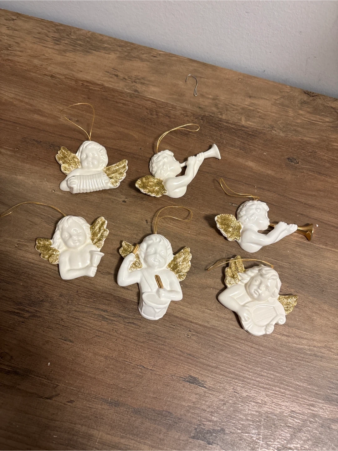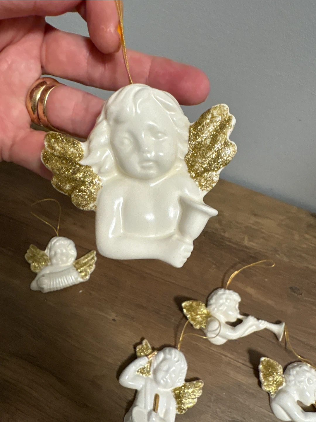ANGEL, CHERUB, SIX VINTAGE CHRISTMAS ORNAMENTS, CERAMIC