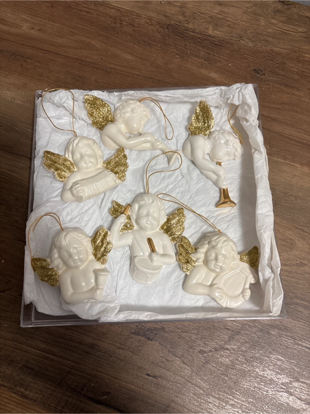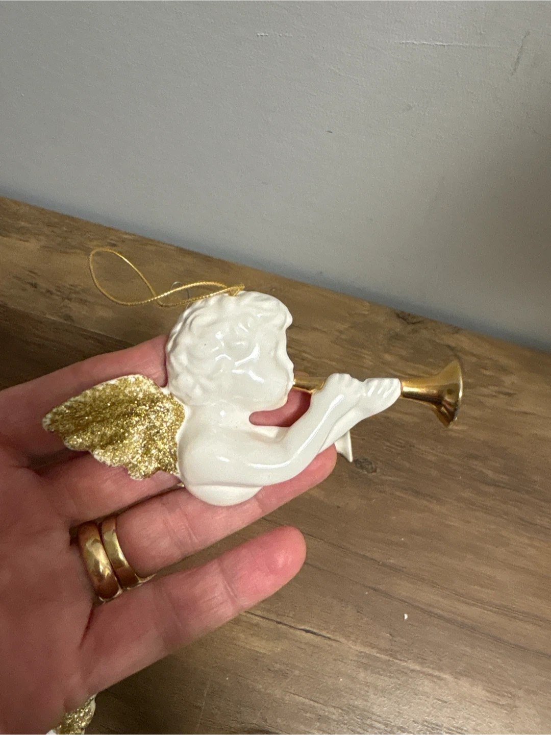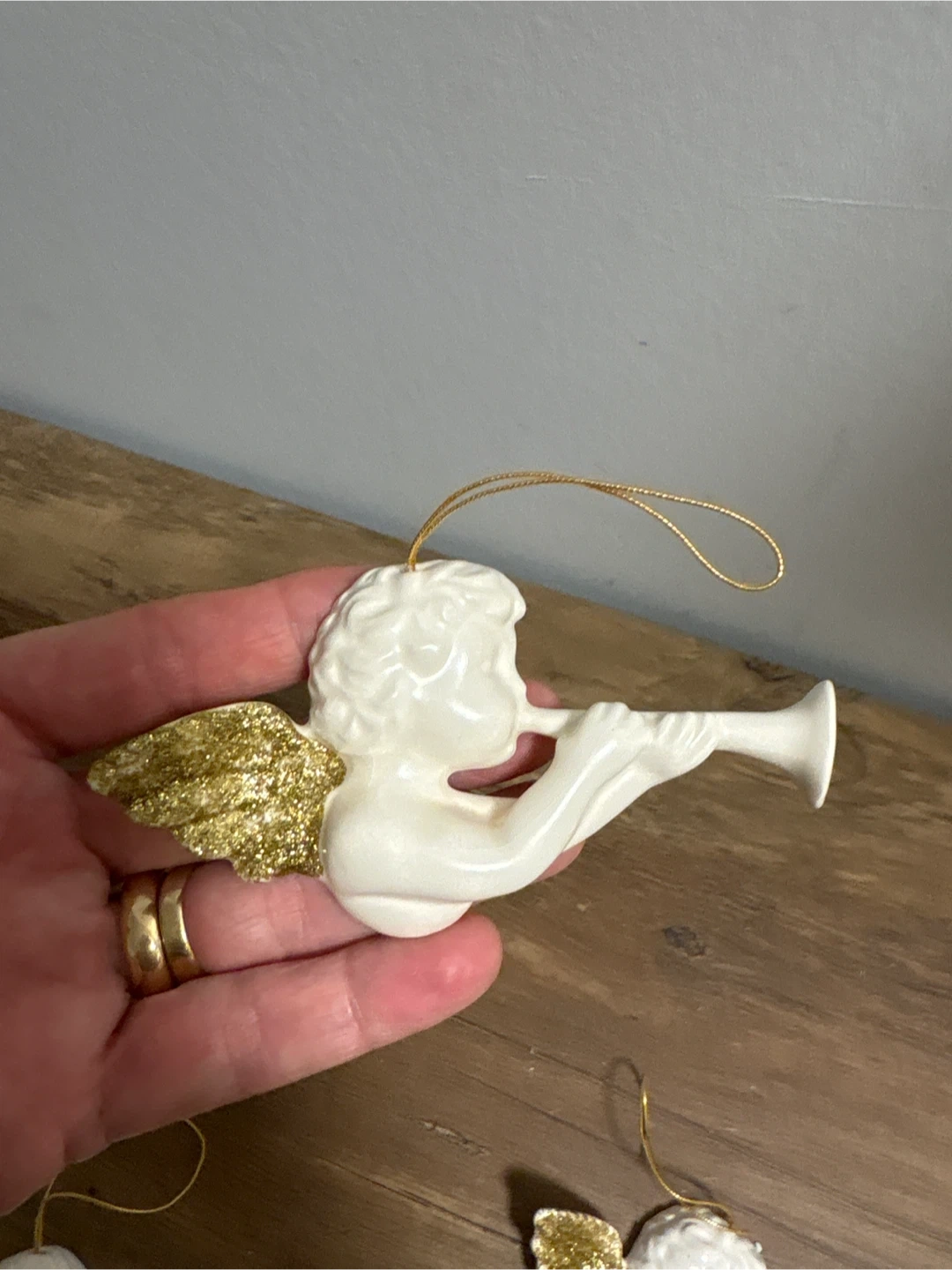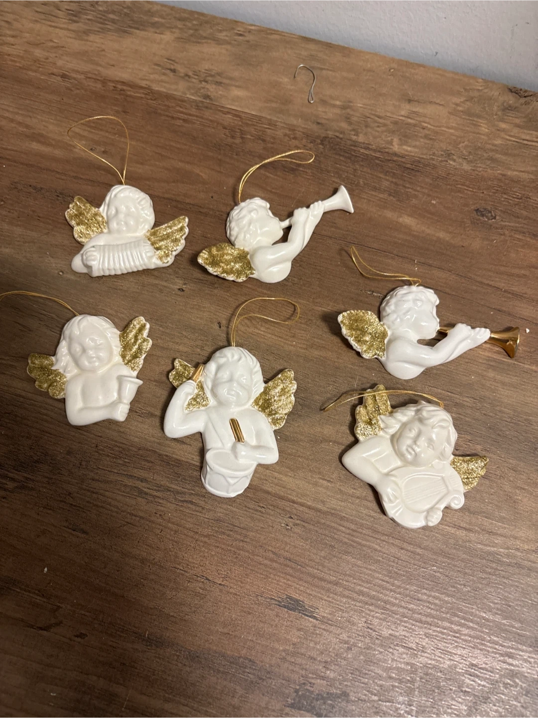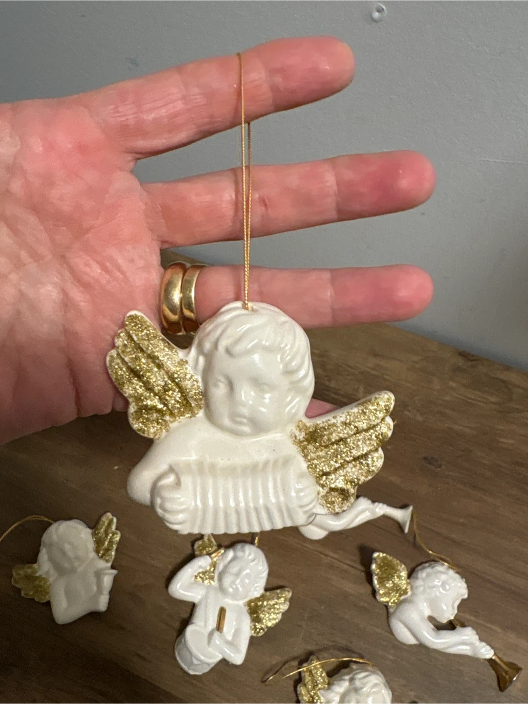 ANGEL, CHERUB, SIX VINTAGE CHRISTMAS ORNAMENTS, CERAMIC