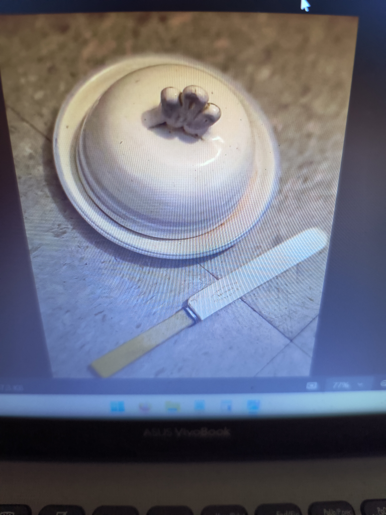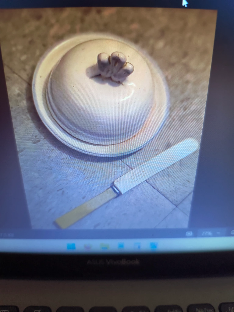 This is a vintage ceramic butter dish with a lid. It comes with a vintage butter knife. LIMITED TIME ONLY %15 OFF