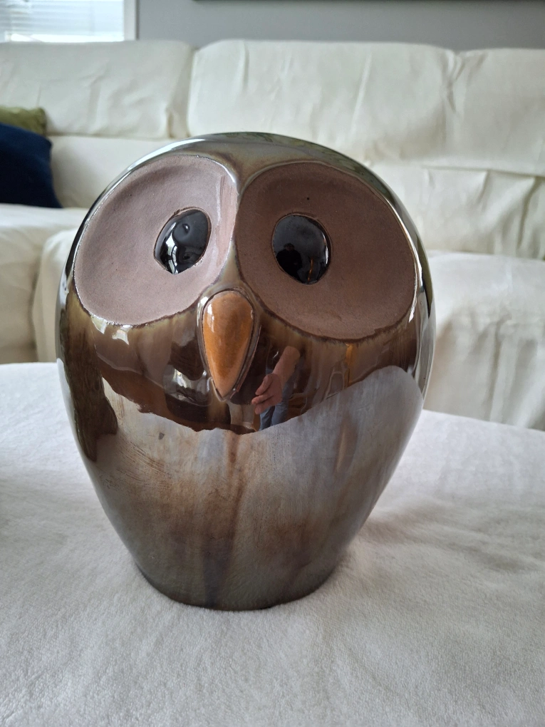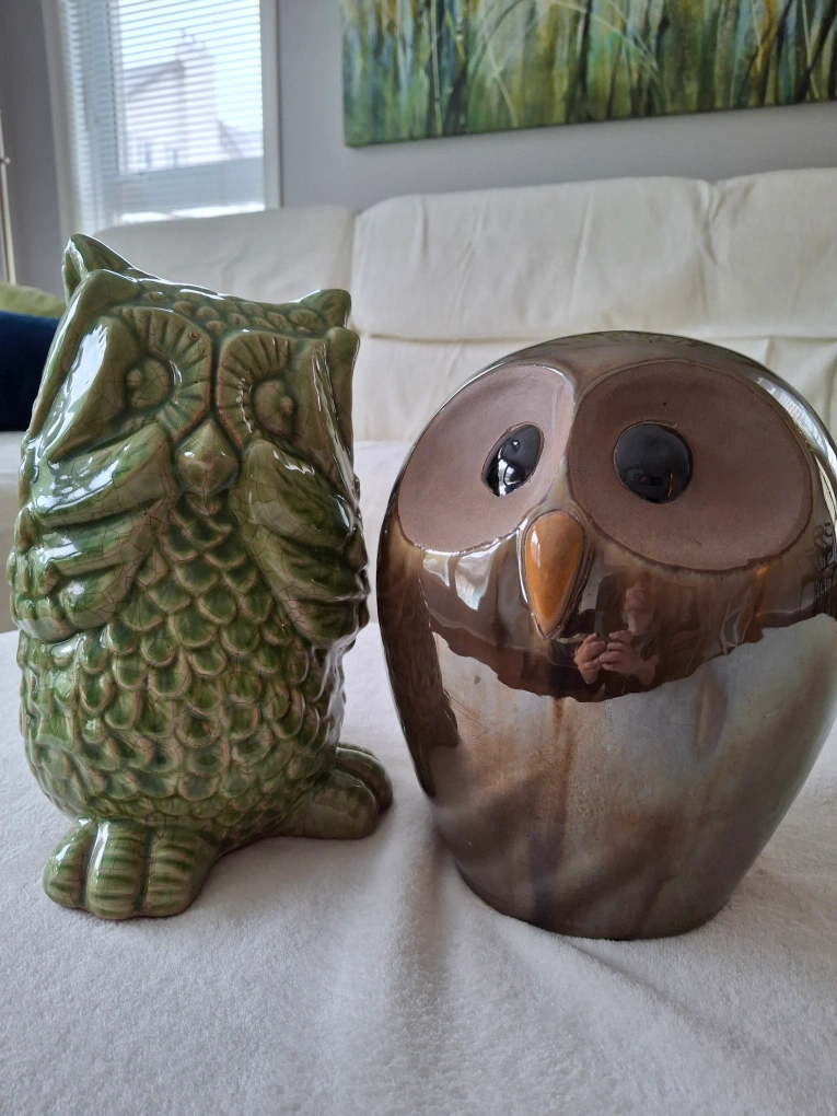 FREE! Cute ceramic owls. Approximately 11 inches high. Can be taken together or separate. Like new! Originally from Pier One Imports.