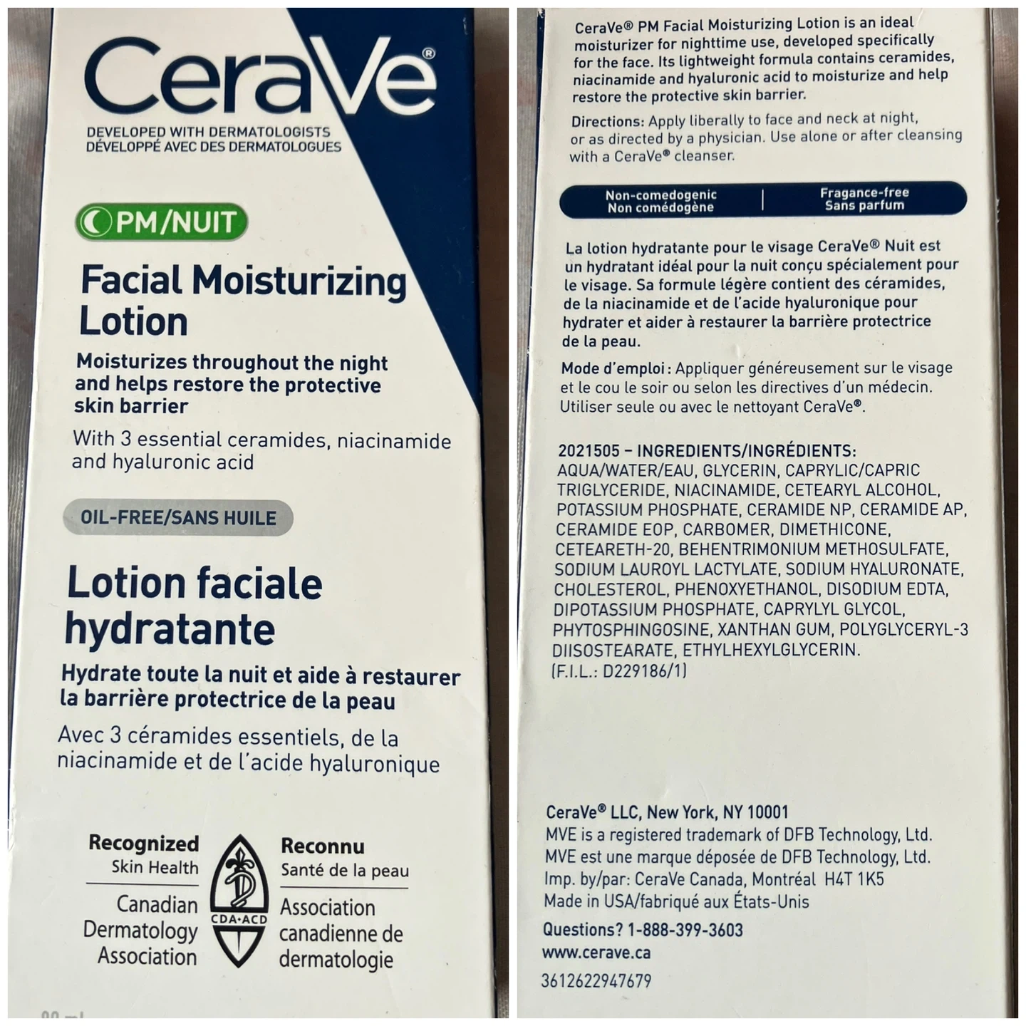 Hi, I'm selling a brand new CeraVe PM Facial Moisturizing Lotion. This lotion is intended for nighttime use and helps hydrate and repair the skin barrier. It contains essential ceramides, niacinamide, and hyaluronic acid, and is oil-free. Recognised by the Canadian Dermatology Association. Pickup only. (In Scarborough.) Thank you for your interest!