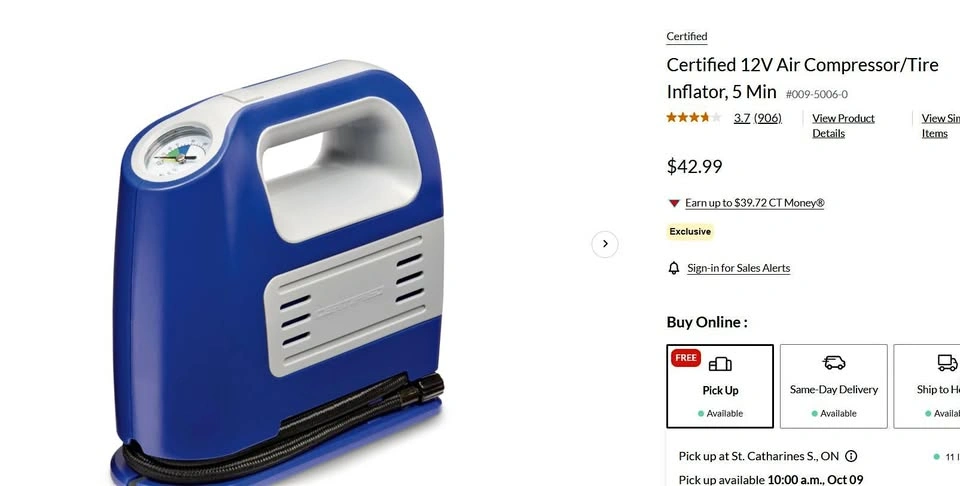 Certified 12V Air Compressor/Tire Inflator