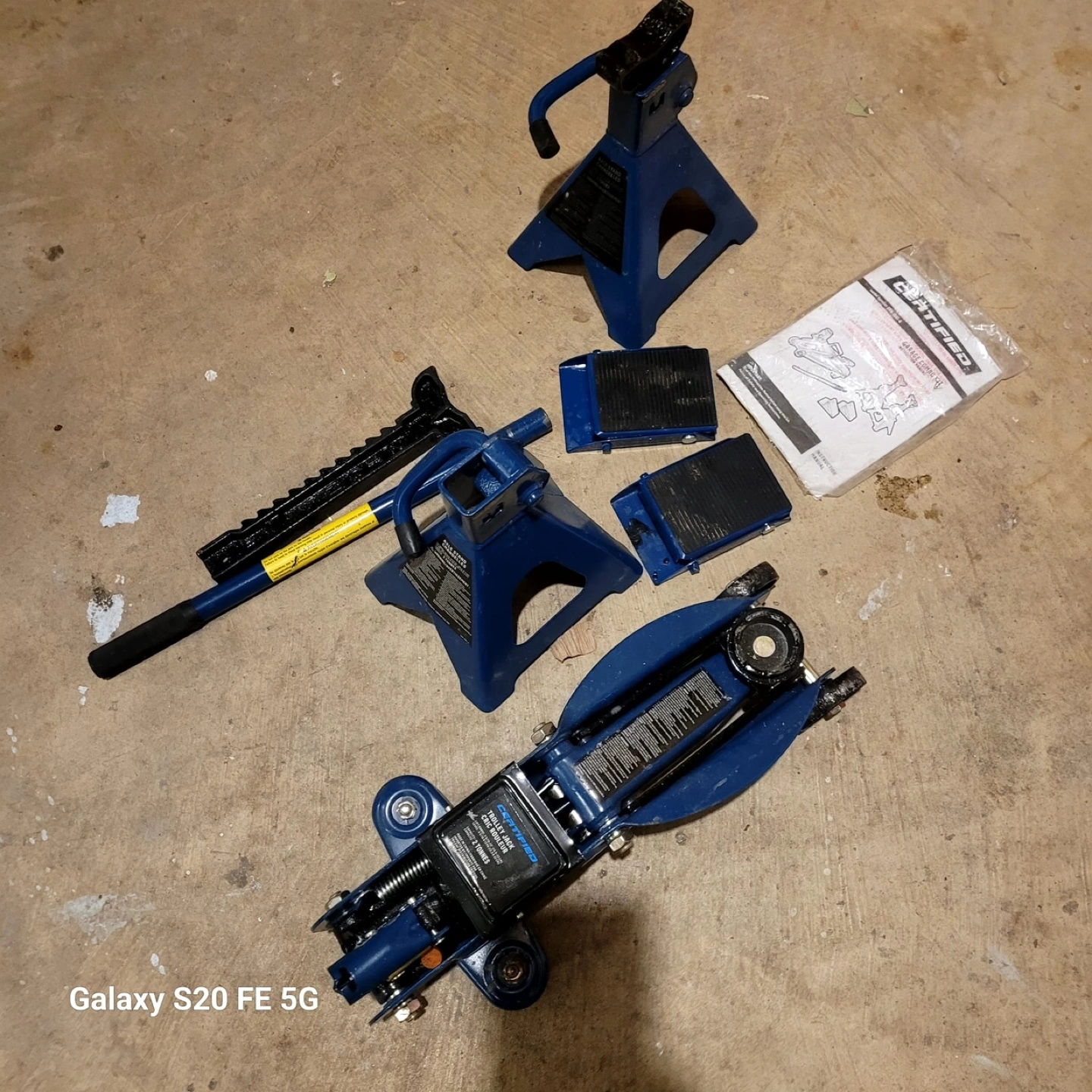 Certified 2-ton low profile floor jack. Includes two jack stands and two wheel ramps. New in box, never used.