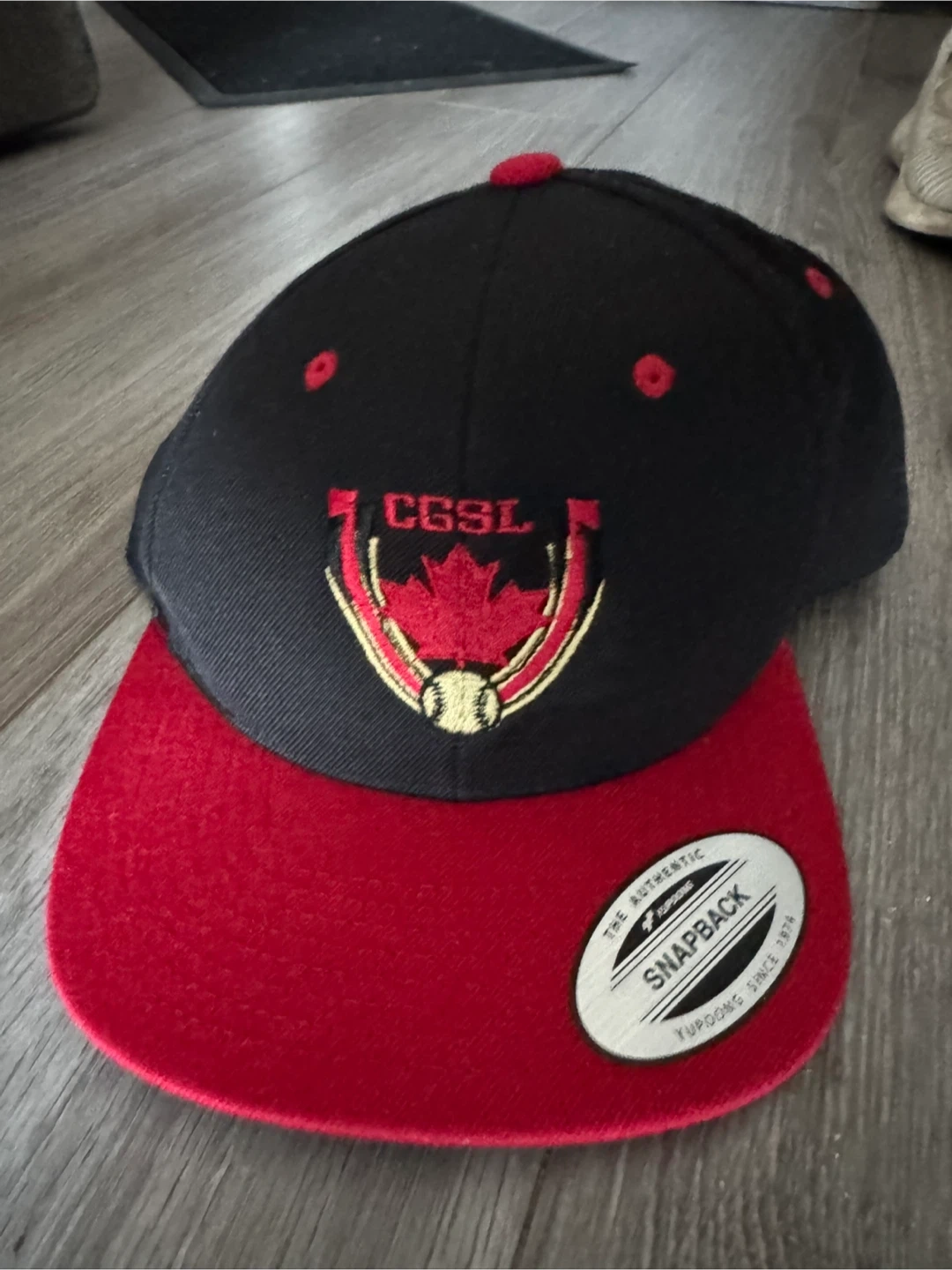 Selling a CGSL snapback hat in black and red. It's in great condition and ready for a new owner! The hat features a Canadian maple leaf design.