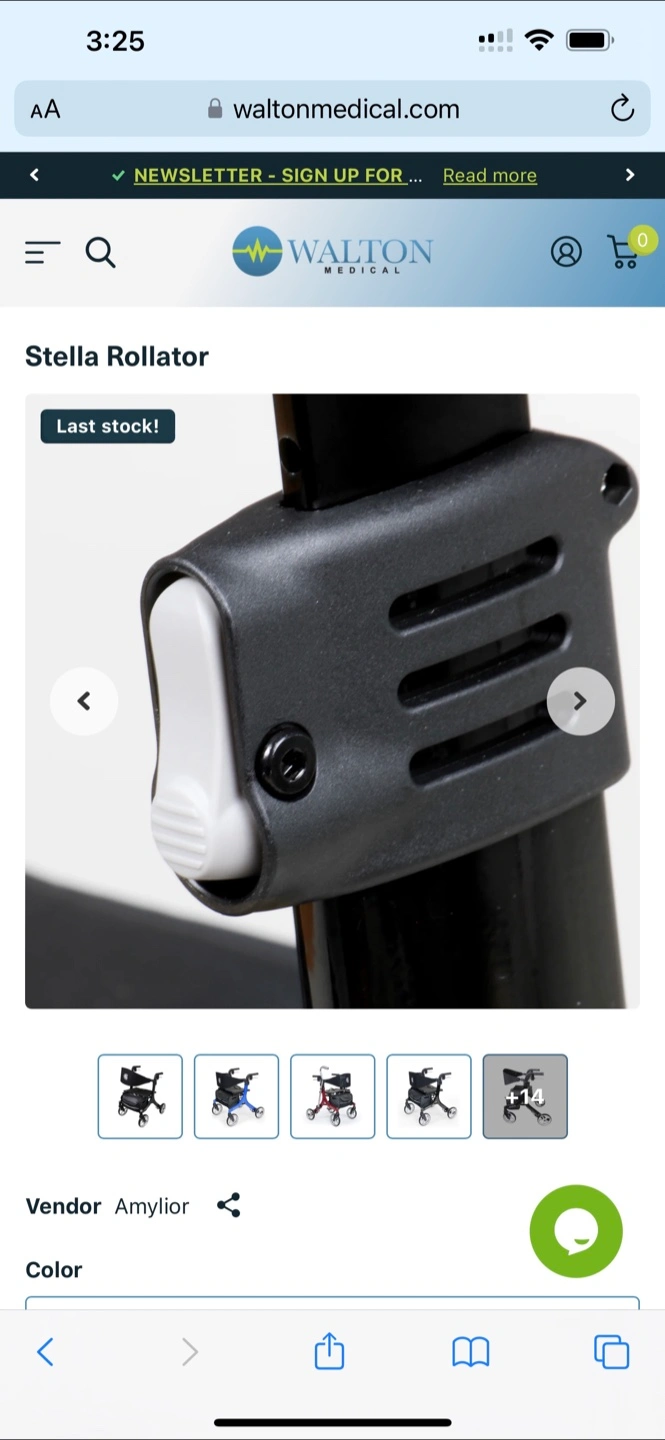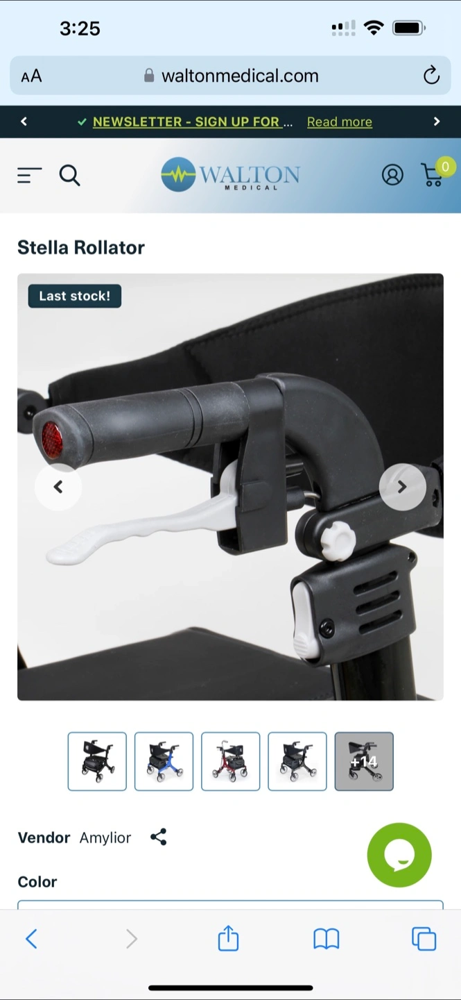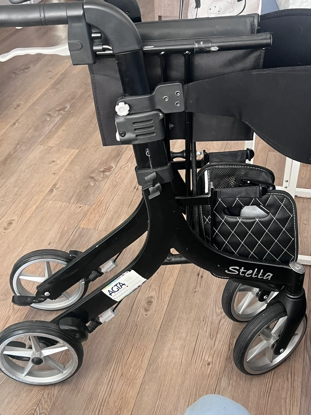 Meeting the needs of people with reduced mobility through a wide selection of products that take their unique reality and daily challenges into account. Overview The light weight, easy to use STELLA rollator includes features that help people with reduced mobility achieve their goals and help them complete their daily activities. Utilizing an aluminum built frame, the STELLA weighs only 14 lb (6.4kg) in addition to all of its features as well as the oversized soft material backrest which offers enhanced comfort when seated. Included features: • Reinforced seat • Four 8" (205 mm) caster with smooth urethane Tires • Locking system when folded • 20% thicker brake cable • *Cane and cup holder FREE • Only 14 lb (6.4 kg) • Oversized height adjustable backrest strap • Adjustable handles with quick release system . Removable bag