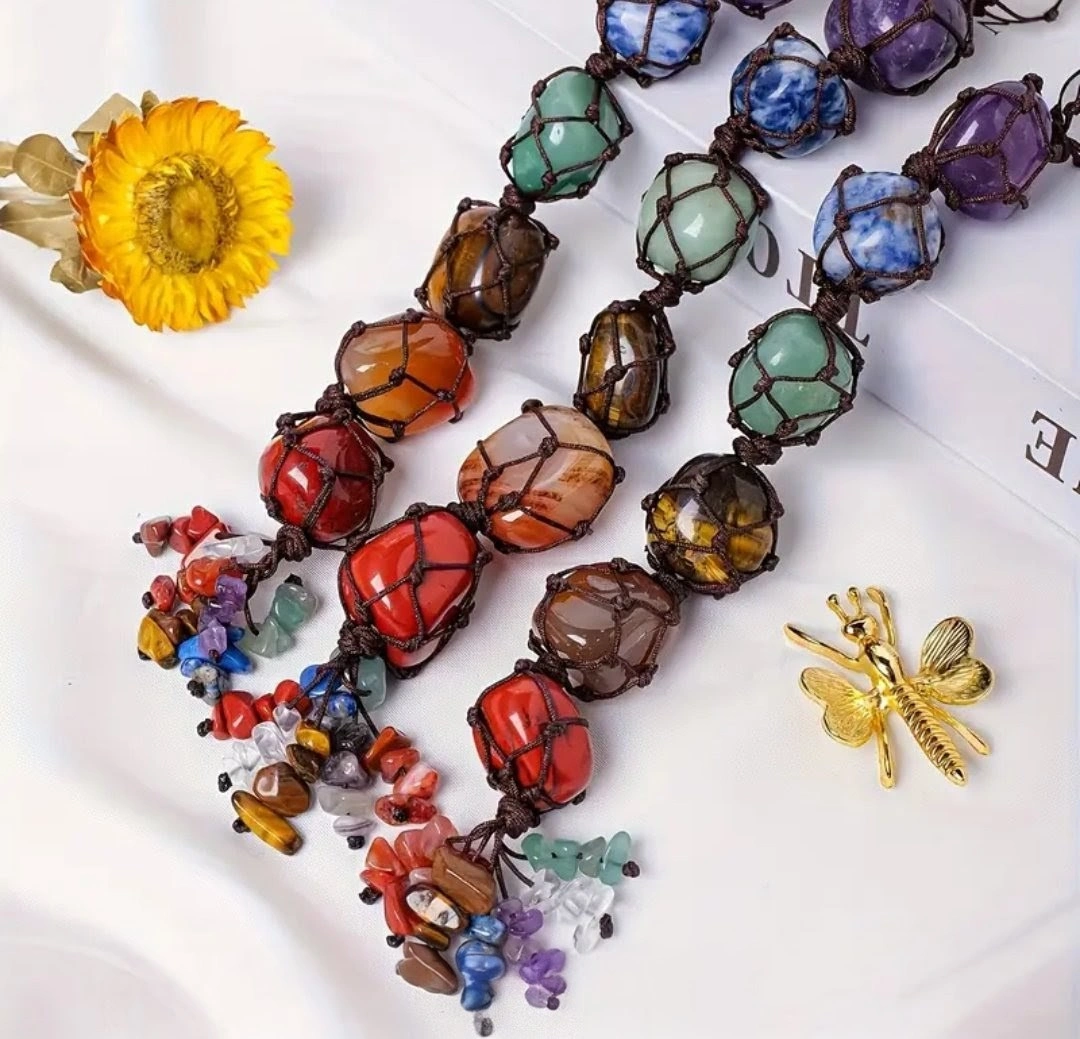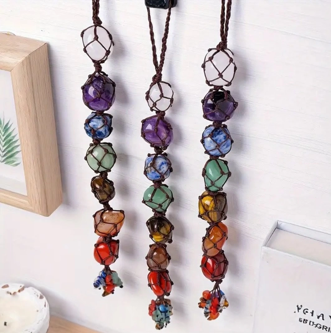 Spark up your home or car with this natural crystal stone pendant in the chakra colours for wall hanging, rear view mirror charm, or other! Price firm.