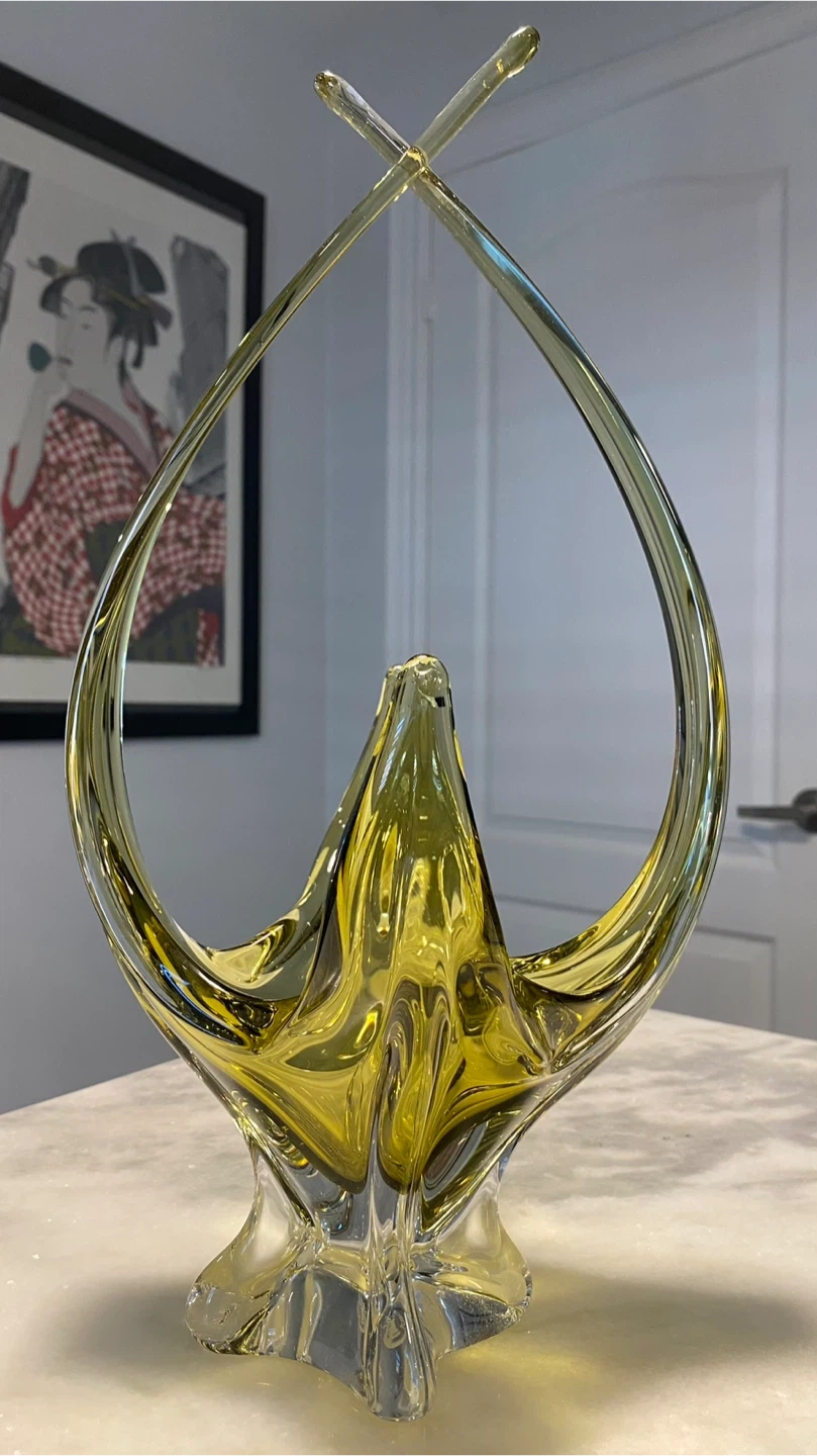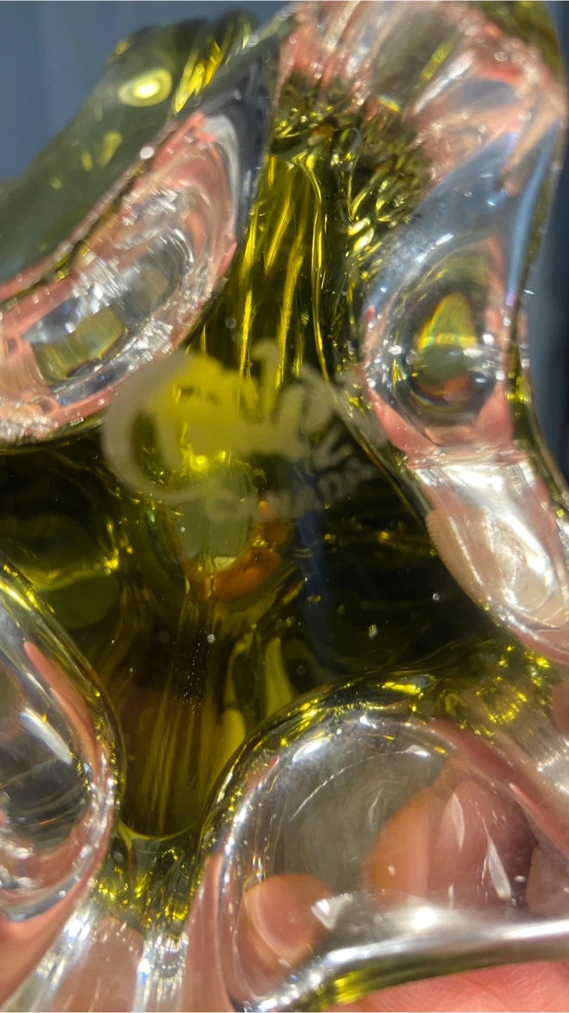 Unique decorative art glass bowl in a striking yellow colour! It's in good condition and would make a great centrepiece or accent piece for your home