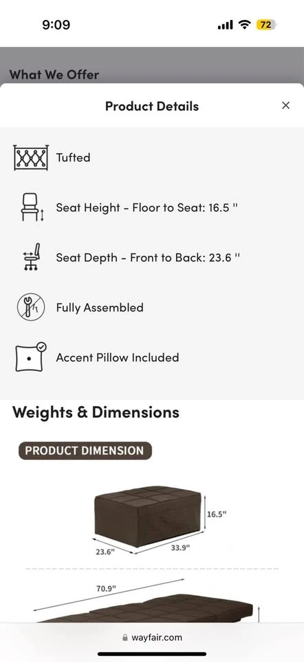 Space-saving sofa bed that can fold into an ottoman or be used as an end table. Easily converts to a single bed. 5 adjustable backrest positions for sitting or lying. Condition: New in box Size : Check images Pickup: SmartStop, 2055 Cornwall Rd, Oakville, ON L6J7S2 Cash only!