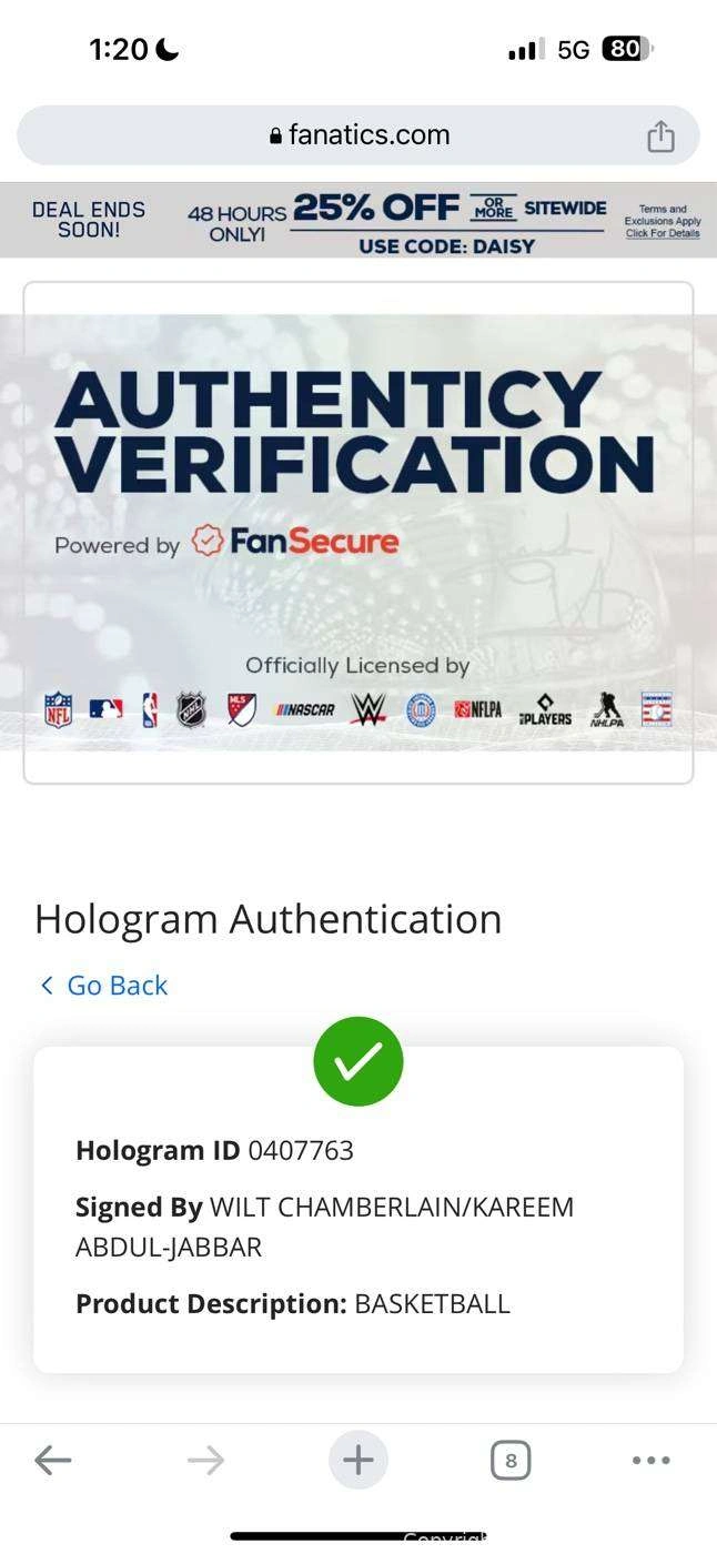his is one of the kind-Original signed basketball by Stilt-The Tilt ( Chamberlain) and signed by Abdul Jabbar....The Ball is in mint condition and comes with CAO. Worth to have it.. $2,750 or best reasonable offer. Serious Buyer only............
