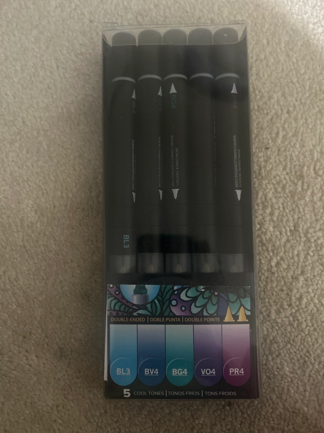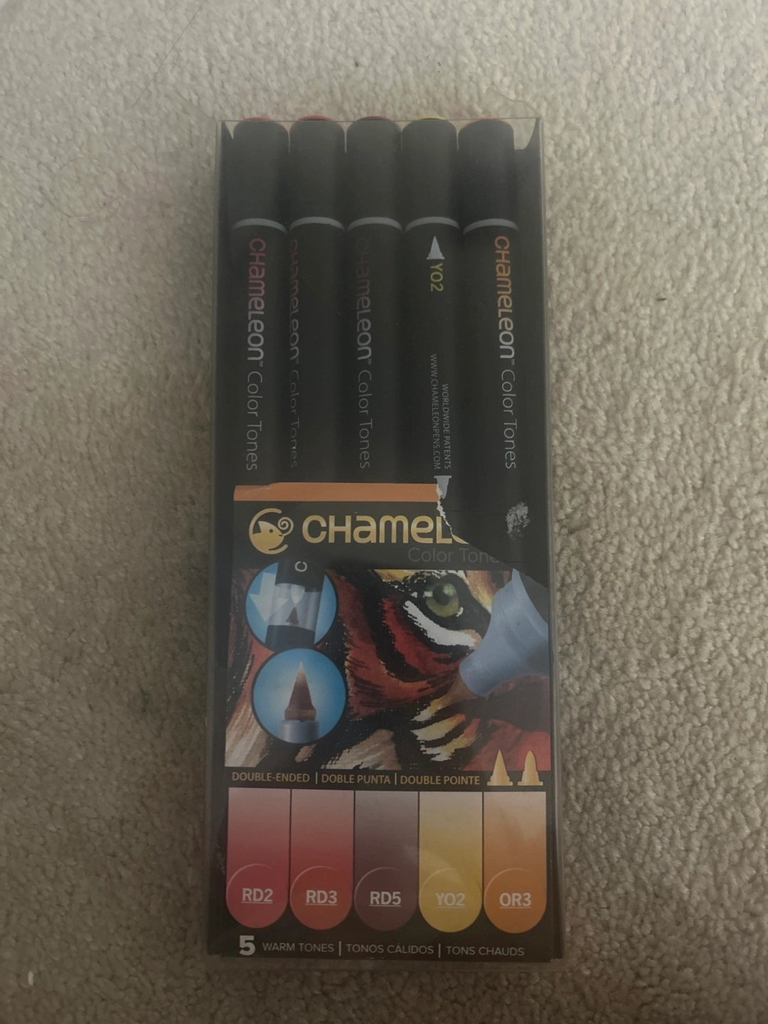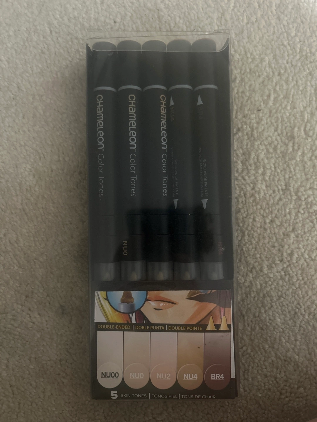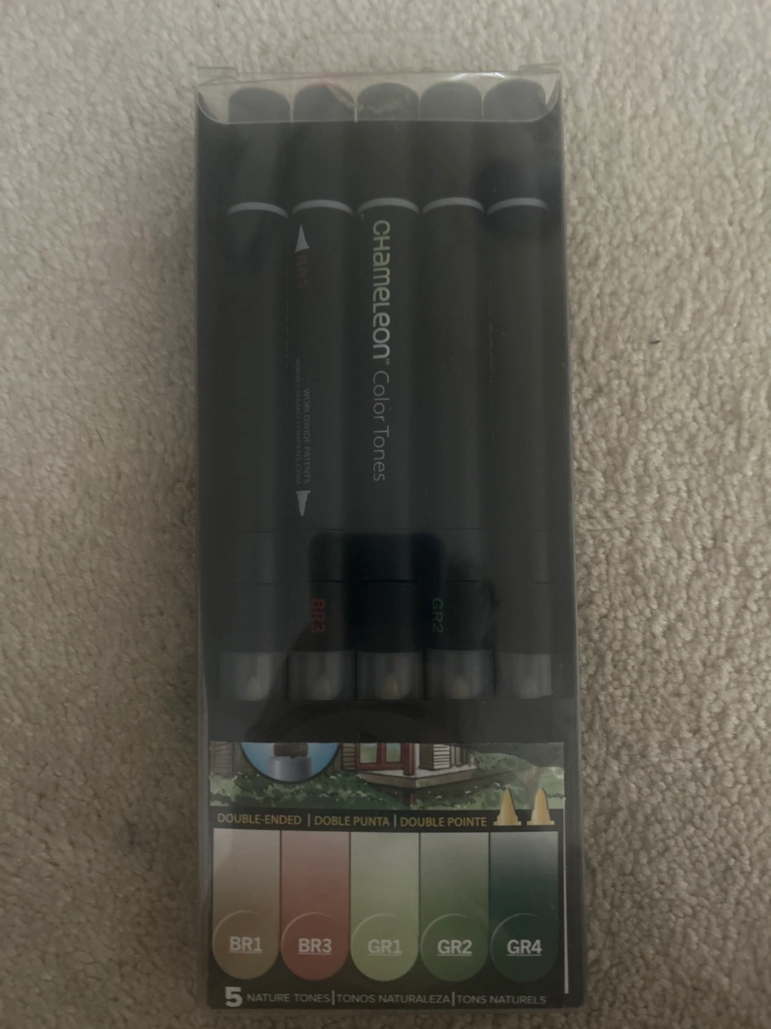 Selling a set of Chameleon Color Tones markers! Each set contains 5 double-ended markers (minus pastel tones set which is meant to be used for the ombré effects) Available sets include: - 5 Nature Tones (BR1, BR3, GR1, GR2, GR4) - 5 Warm Tones (RD2, RD3, RD5, YO2, OR3) - 5 Cool Tones (BL3, BV4, BG4, VO4, PR4) - 5 Skin Tones (NU00, NU0, NU2, NU4, BR4) - 5 Pastel Tones (PK2, PK3, BV2, BL4, GR3) Can purchase separately if offer is made or purchased all together for $15