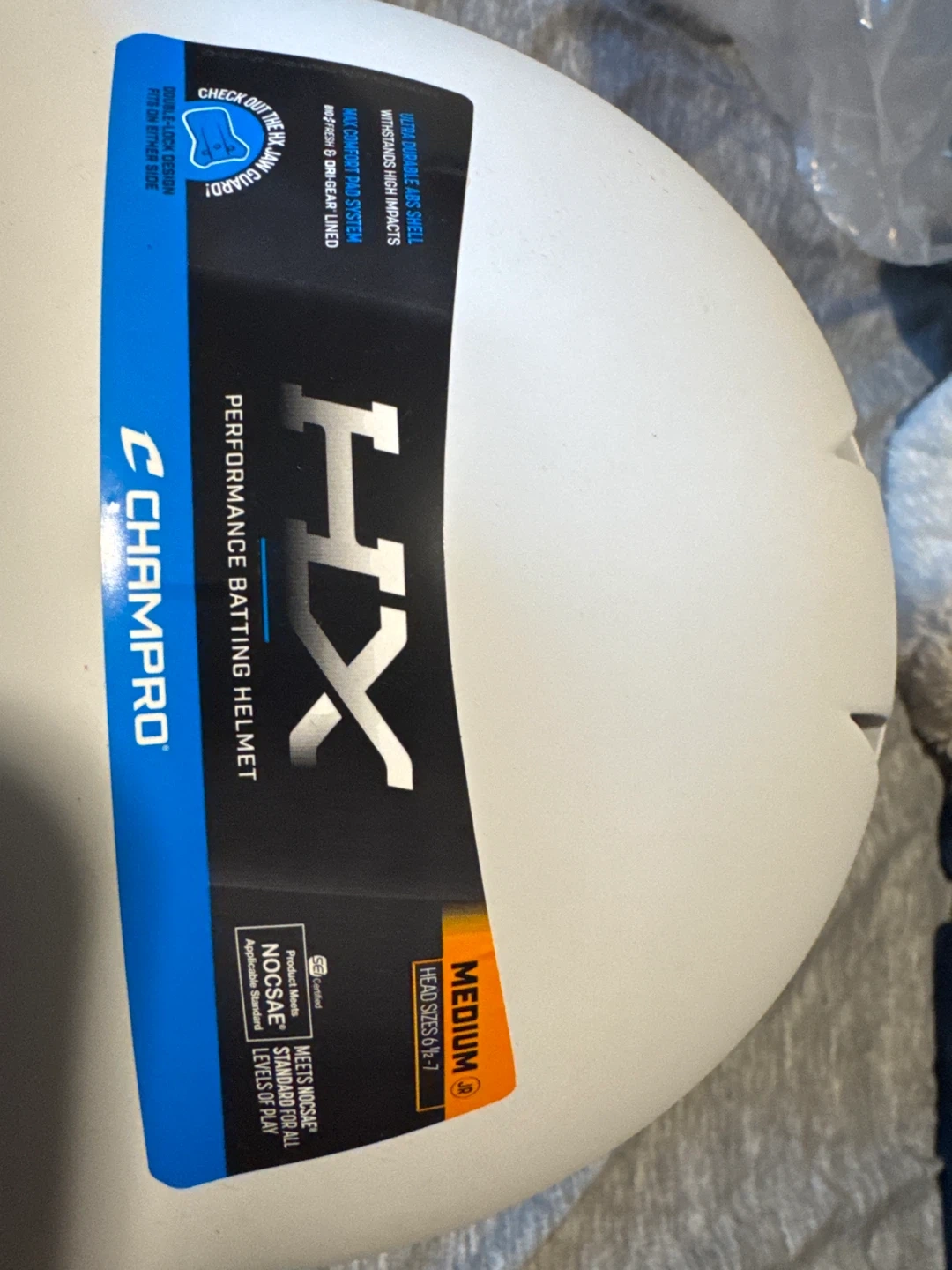 Selling a Champro HXJ performance batting helmet in size medium (fits head sizes 6 1/2 - 7). It's in great shape and ready for the season!