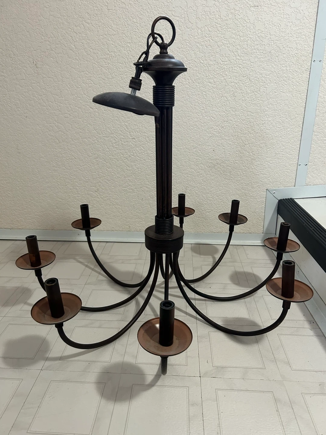 Classic chandelier with a bronze finish. From Wayfair, chain cannot be extended. It's in good condition and ready to be installed!