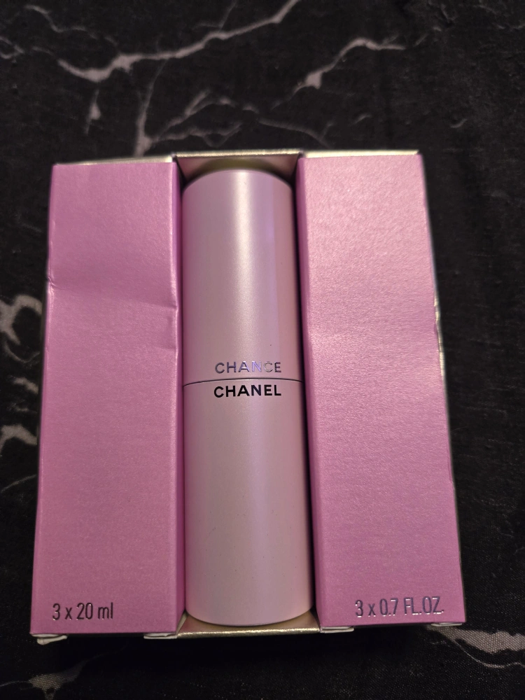 Selling a Chanel Chance perfume set! It comes with 3 x 20ml bottles, perfect for travel or keeping one in your purse. The box is included!