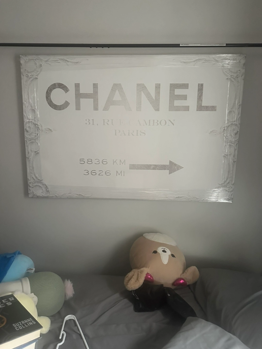 Large framed canvas print. Features Chanel logo, address, and distance markers. White frame. Great for home decor. Pick up only. Cash and e-transfers only.