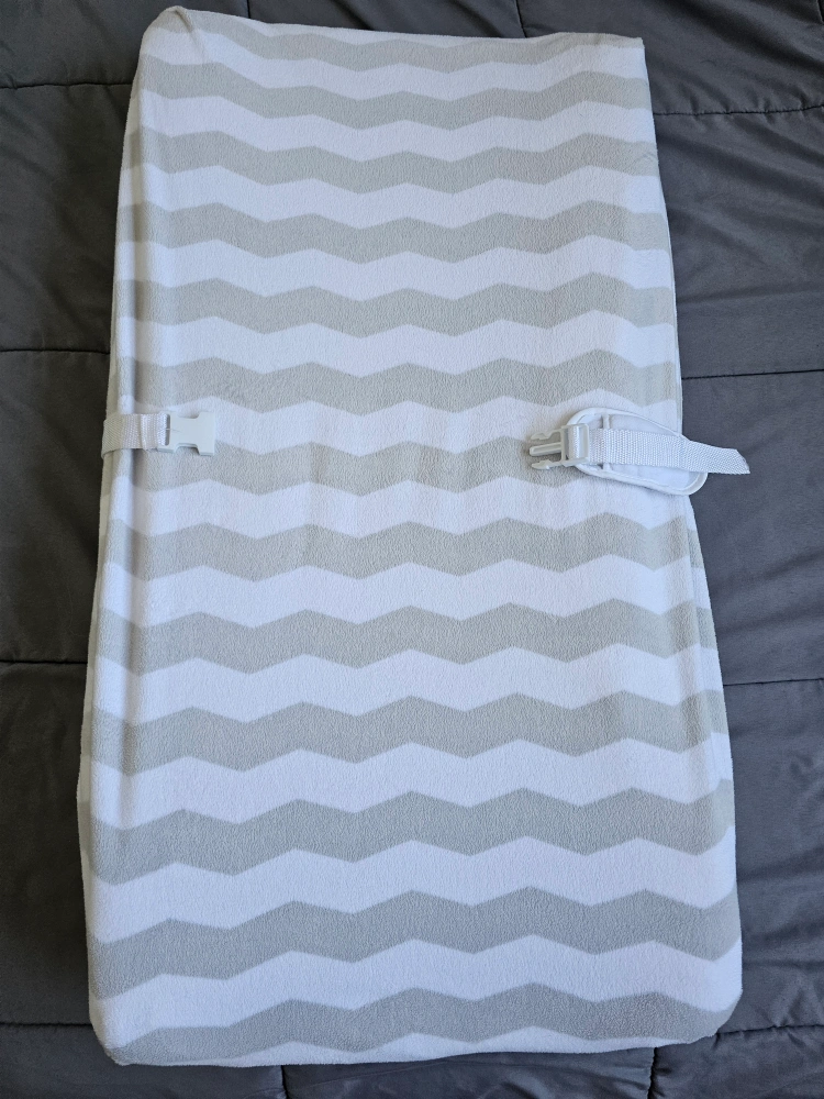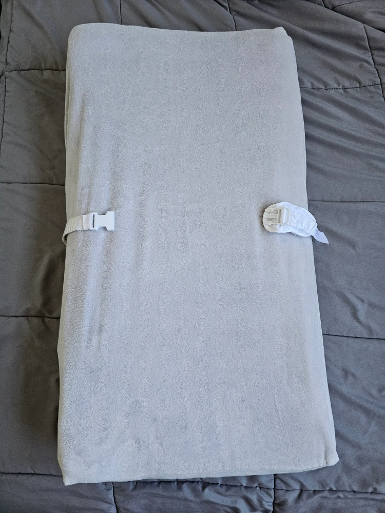 Changing pad in great condition! Perfect for diaper changes. Has straps to keep baby safe and secure! Comes with 2 washable covers.