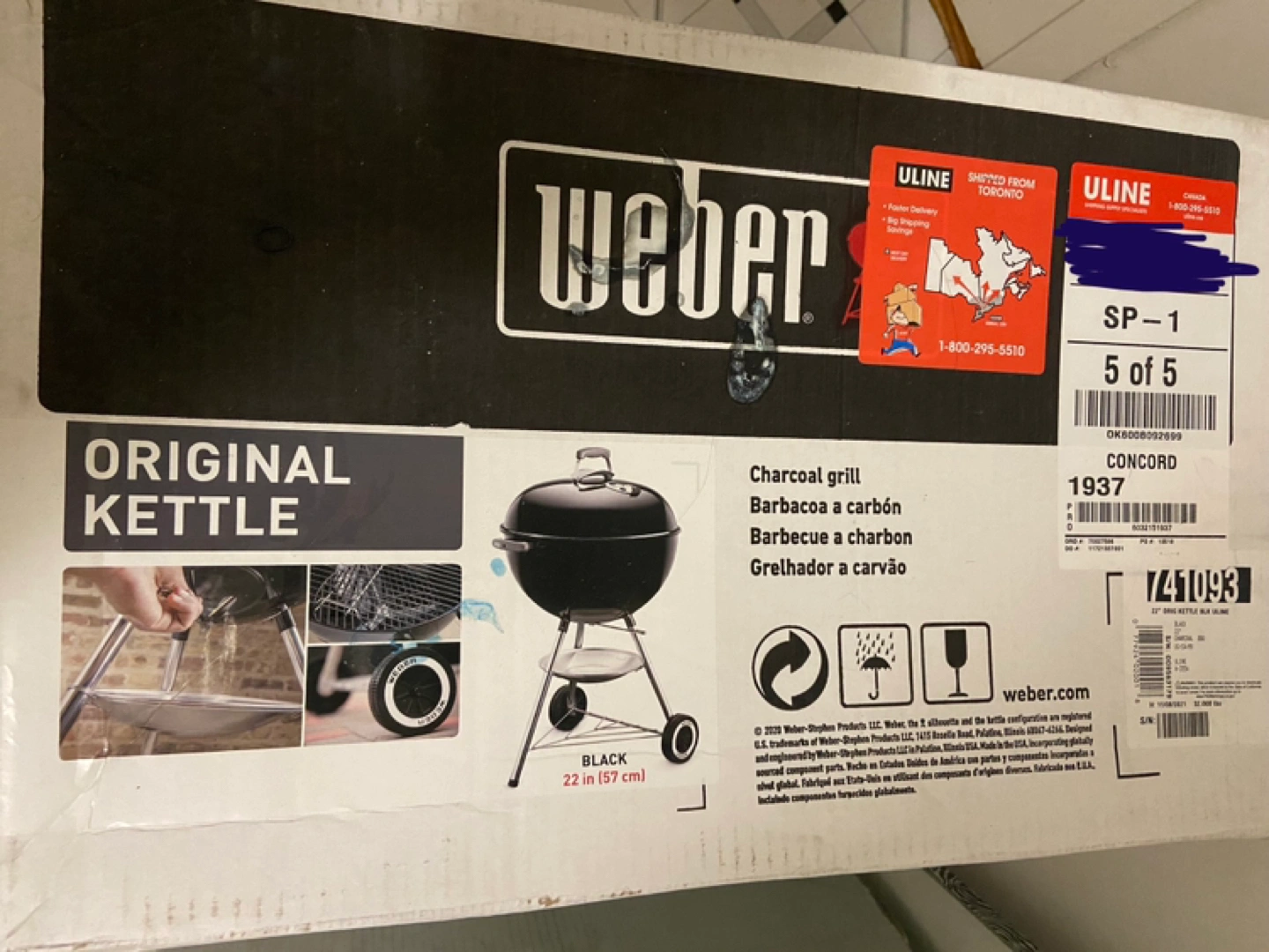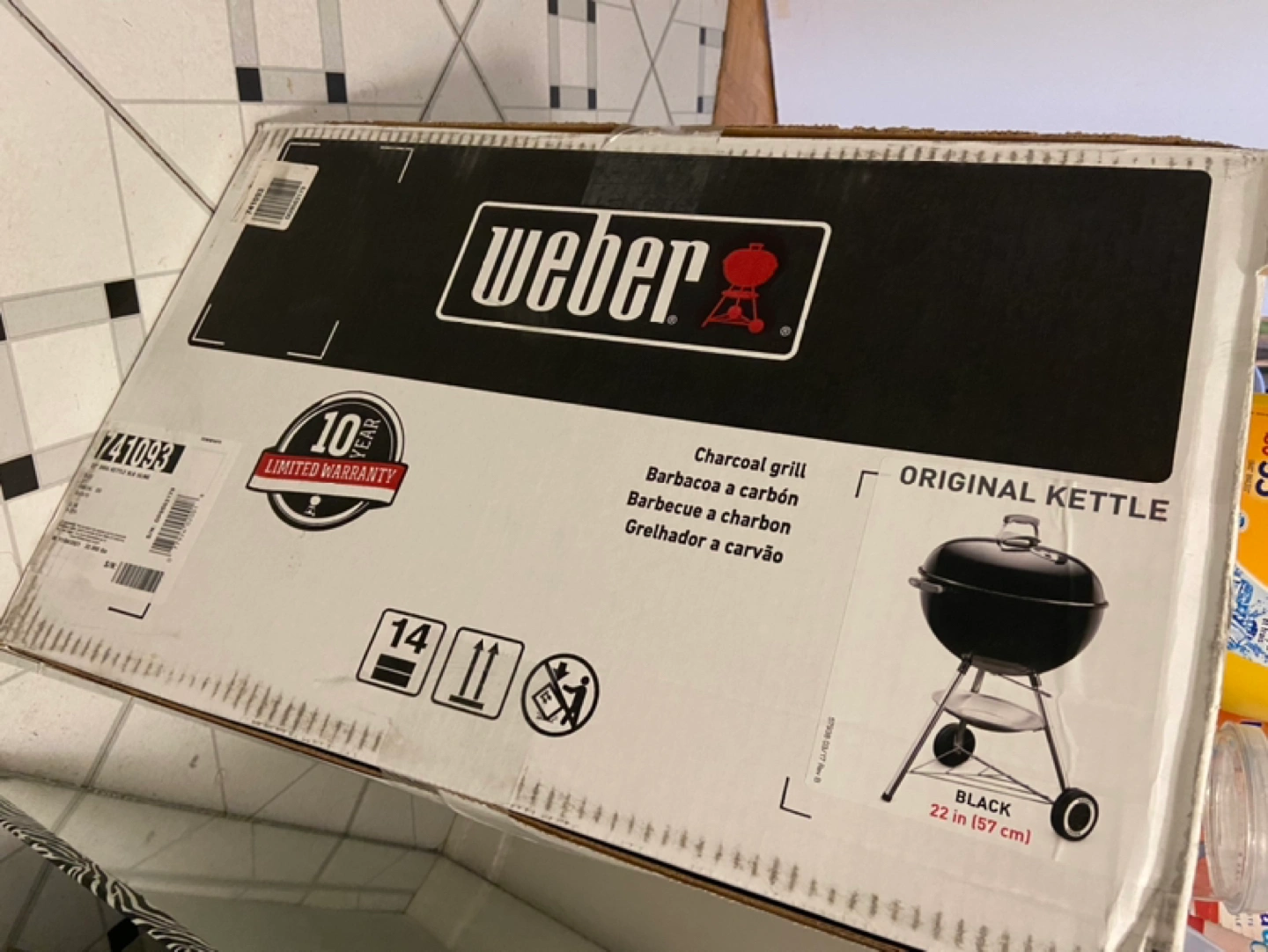 Brand new Still in box Never opened Weber 22” charcoal grill Pick up only near Fairview mall.