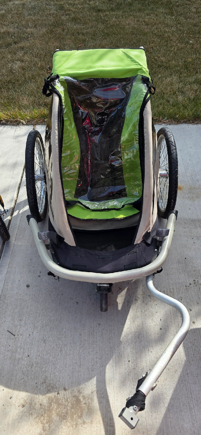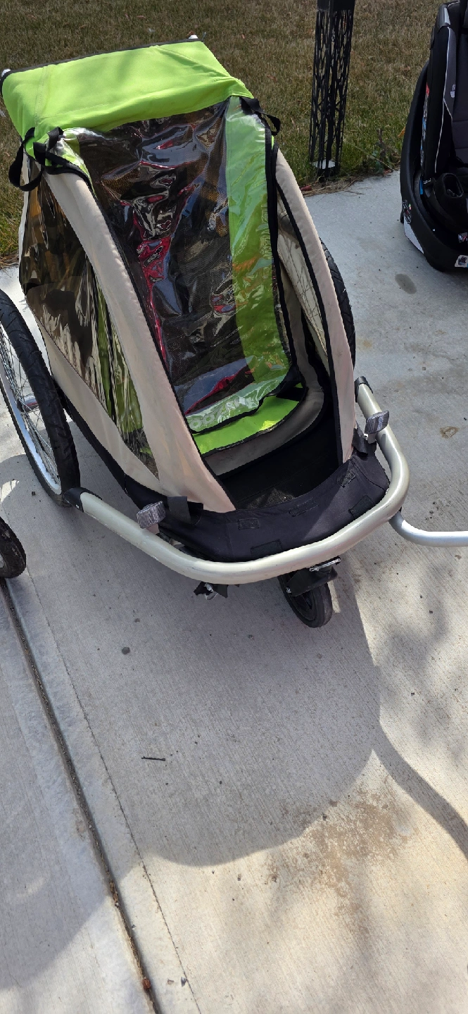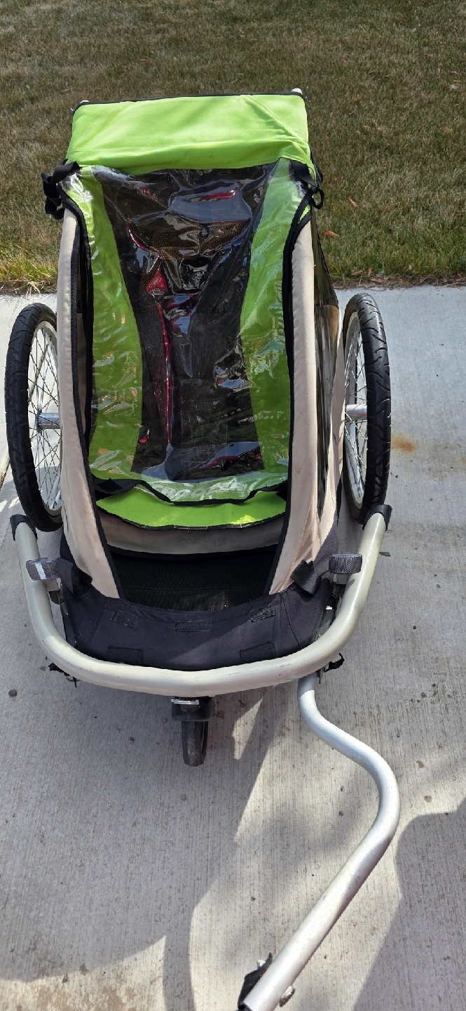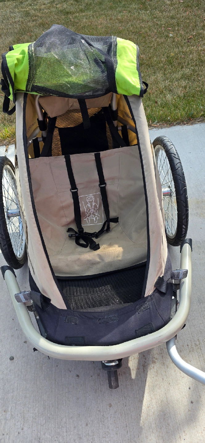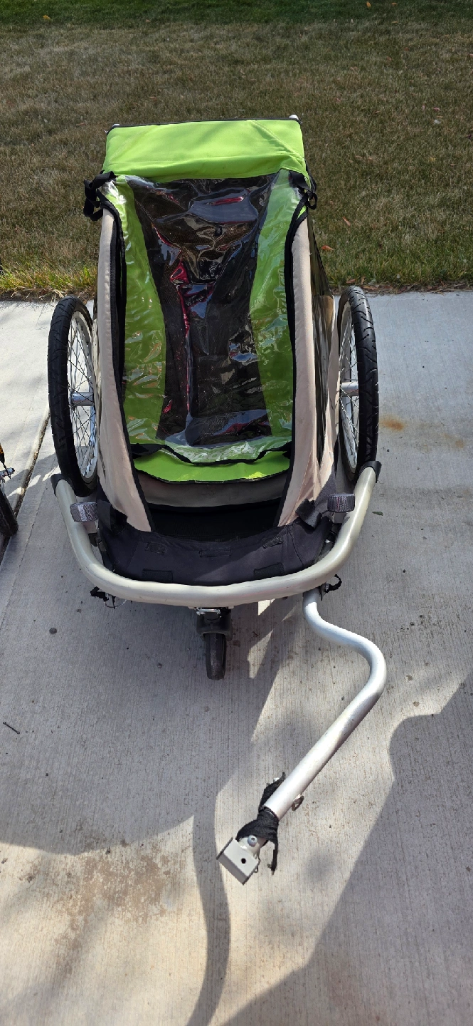Selling a Chariot Cougar 2 child carrier and bike trailer! It's in good condition and ready for family adventures. This versatile trailer can be used for biking, strolling, and jogging, making it perfect for active families. It comfortably seats two children and has plenty of room for cargo. Get ready for some fun outdoor excursions!