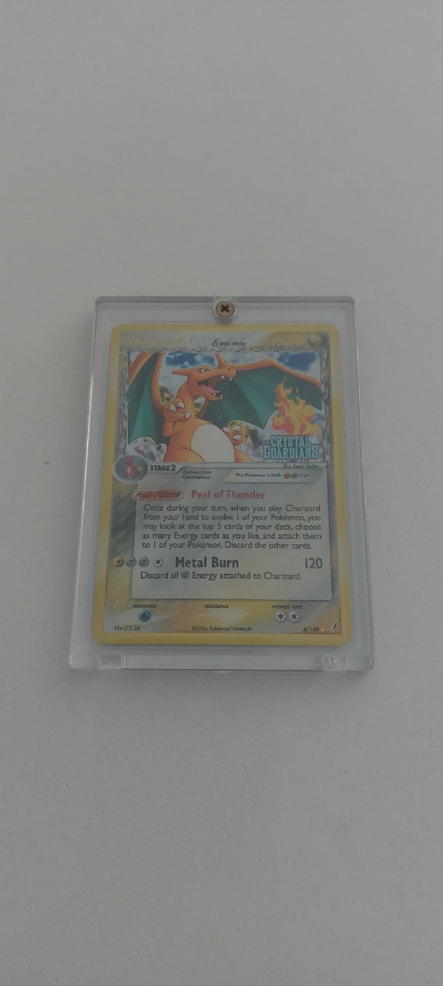 Selling a Charizard Pokemon card from the Crystal Guardians set! It's in great condition and has been in a protected case since it came out of the pack.