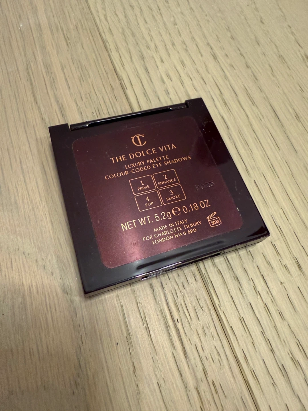 Selling a gently used Charlotte Tilbury Dolce Vita Luxury Palette Colour-Coded Eye Shadows. This palette includes four beautiful shades to prime, enhance, pop, and smoke your eyes. Net weight is 5.2g/0.18oz
