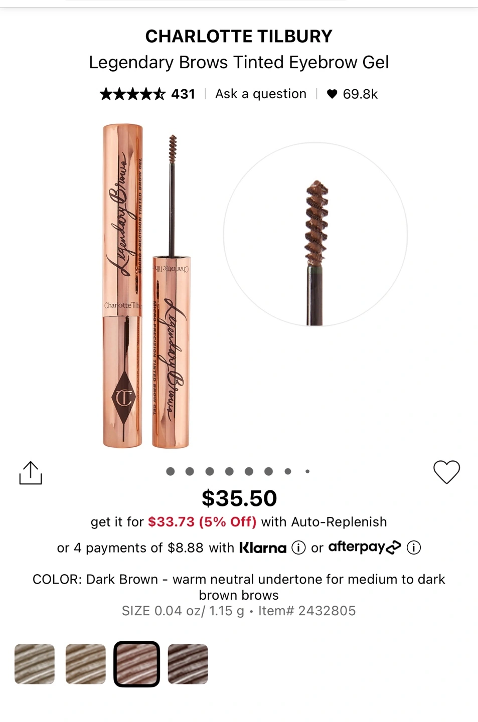 New Charlotte Tilbury Legendary Brows eyebrow gel. Dark brown shade. Great for shaping and defining brows.