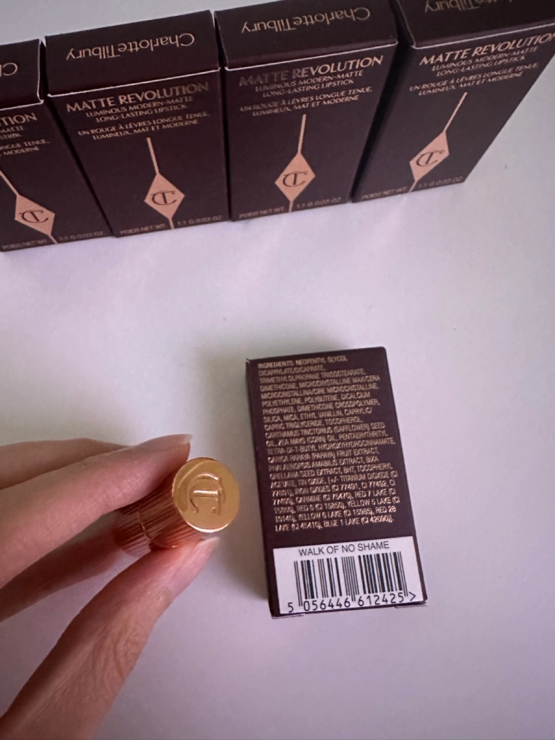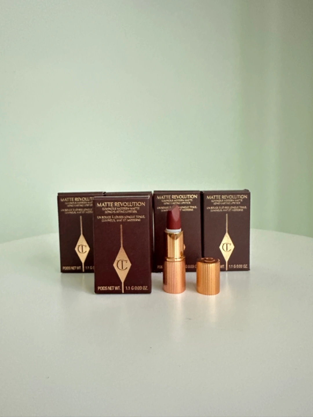 Brand new, never used Charlotte Tilbury Matte Revolution lipstick in the shade Walk of No Shame. Miniature size. Includes box. Selling multiple. $10 each pick up in metrotown