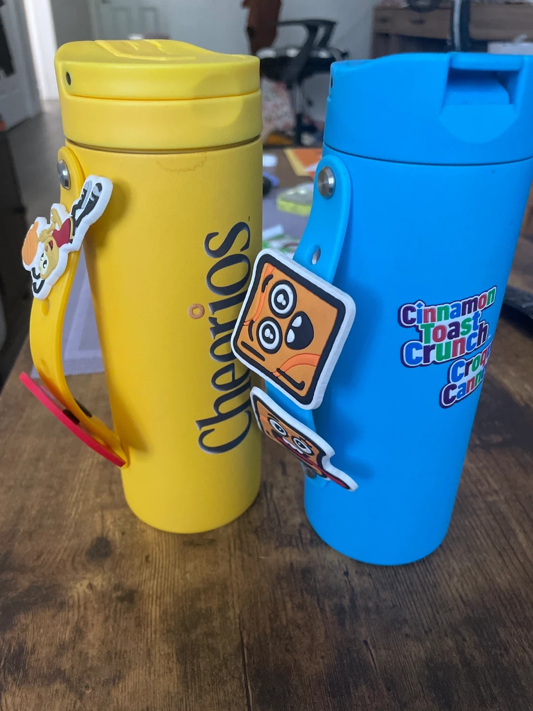 Show allSelling a pair of fun water bottles! One is Cheerios branded and the other is Cinnamon Toast Crunch. Great for kids or anyone who loves cereal