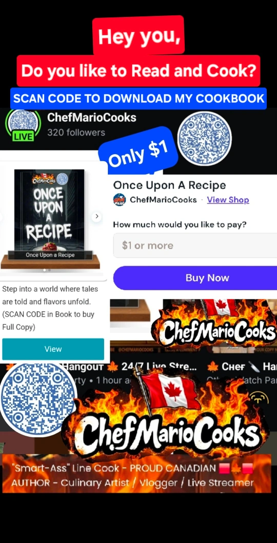 Check out ChefMarioCooks' "Once Upon A Recipe" story cookbook! Step into a world where tales are told and flavors unfold. Scan the code on the photo to buy the full copy for ONLY $1 or click the link below https://ko-fi.com/s/7709d052db